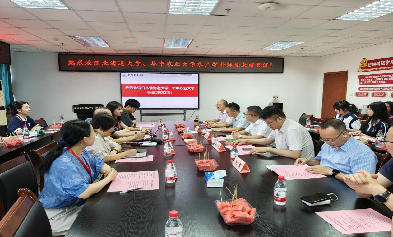 代表团在成都校区举行学术交流会。曹玉琼、何桦分别致辞。向井徹教授、杨淞教授等中日专家学者及三校师生围绕特色水产研究方向及水产养殖、种质资源保护、营养饲料等共同关注领域进行了深入研讨。