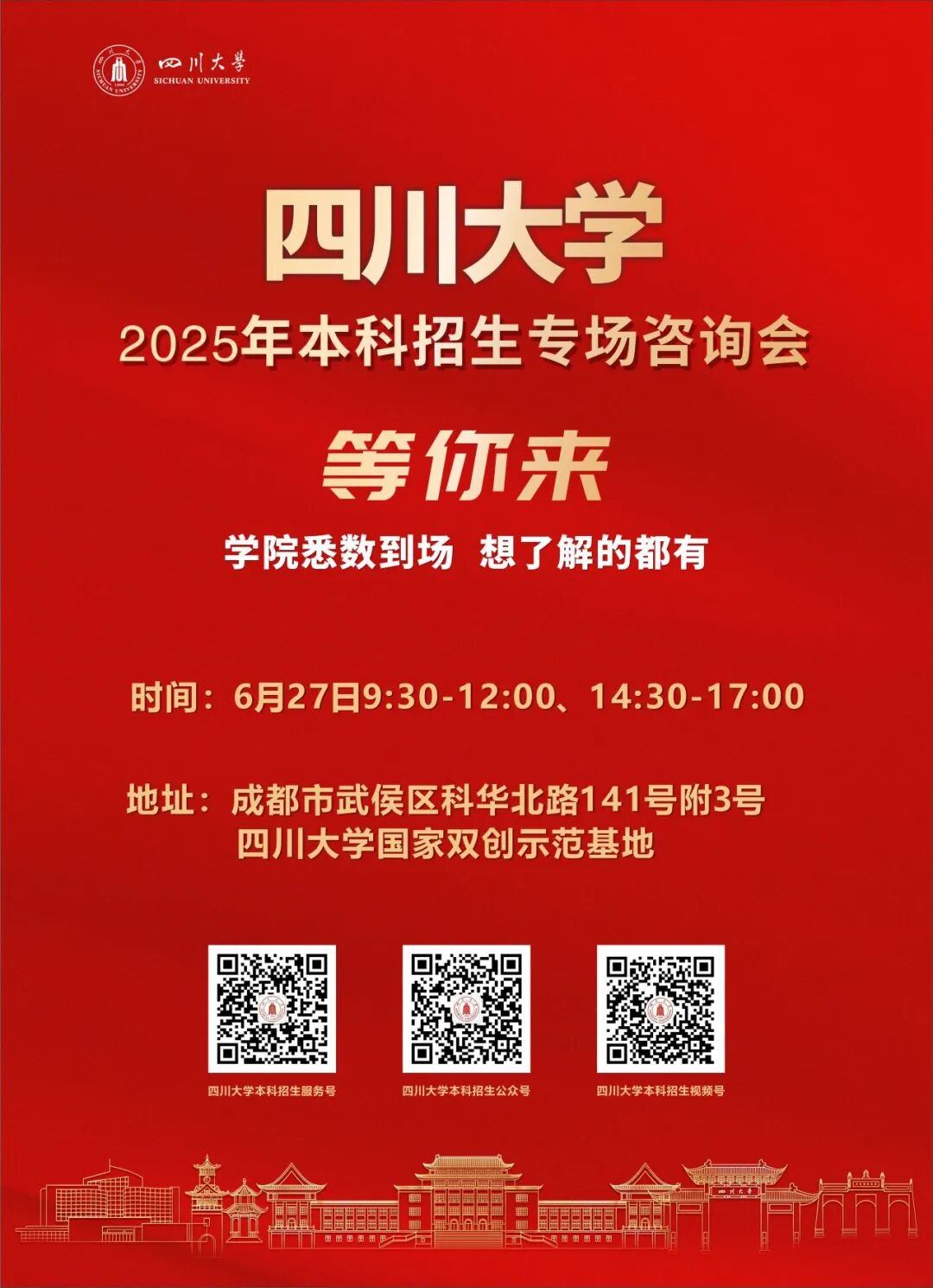 招生咨询地址:成都市一环路南一段24号四川大学招生办公室