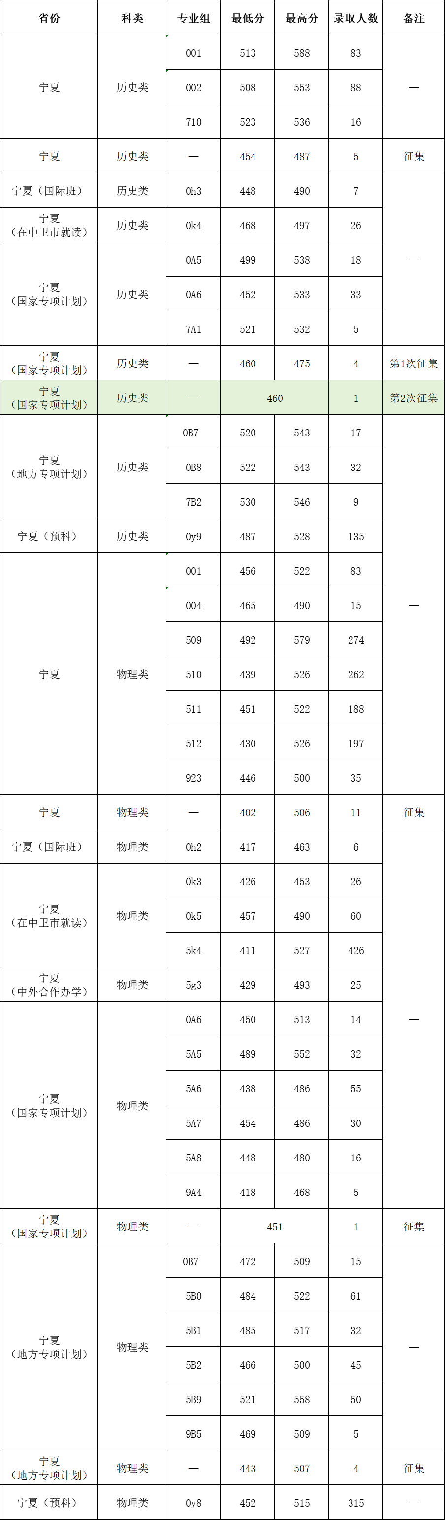 我校在其他生源省份相关批次正在录取中,请各位考生及家长持续关注宁夏大学本科招生网、宁夏大学本科招生微信公众号发布的招生动态。