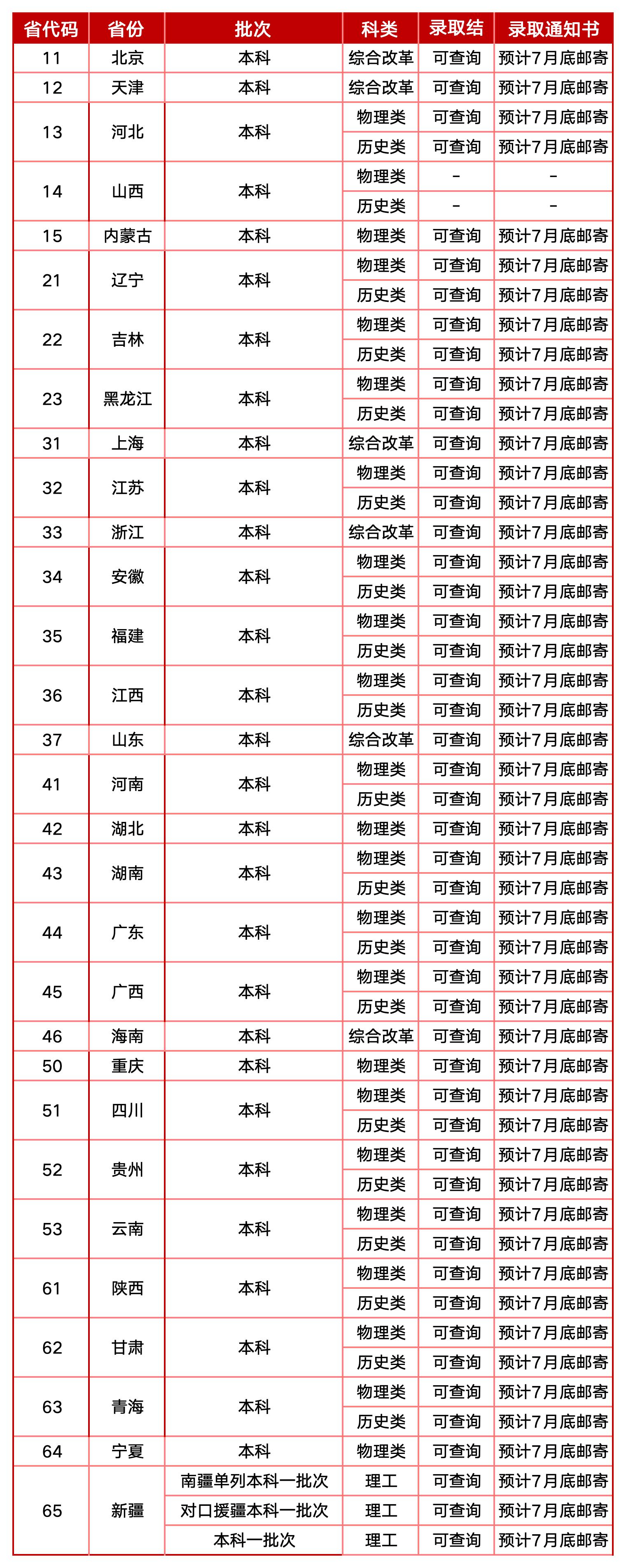 3.对于未公布录取结果的省份(批次),其录取工作将根据各省招生主管部门安排进行,考生们不必心急,请耐心等待。