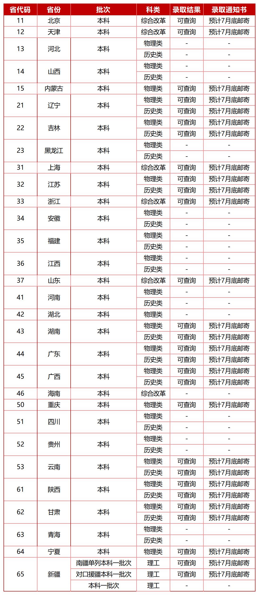 3.对于未公布录取结果的省份(批次),其录取工作将根据各省招生主管部门安排进行,考生们不必心急,请耐心等待。