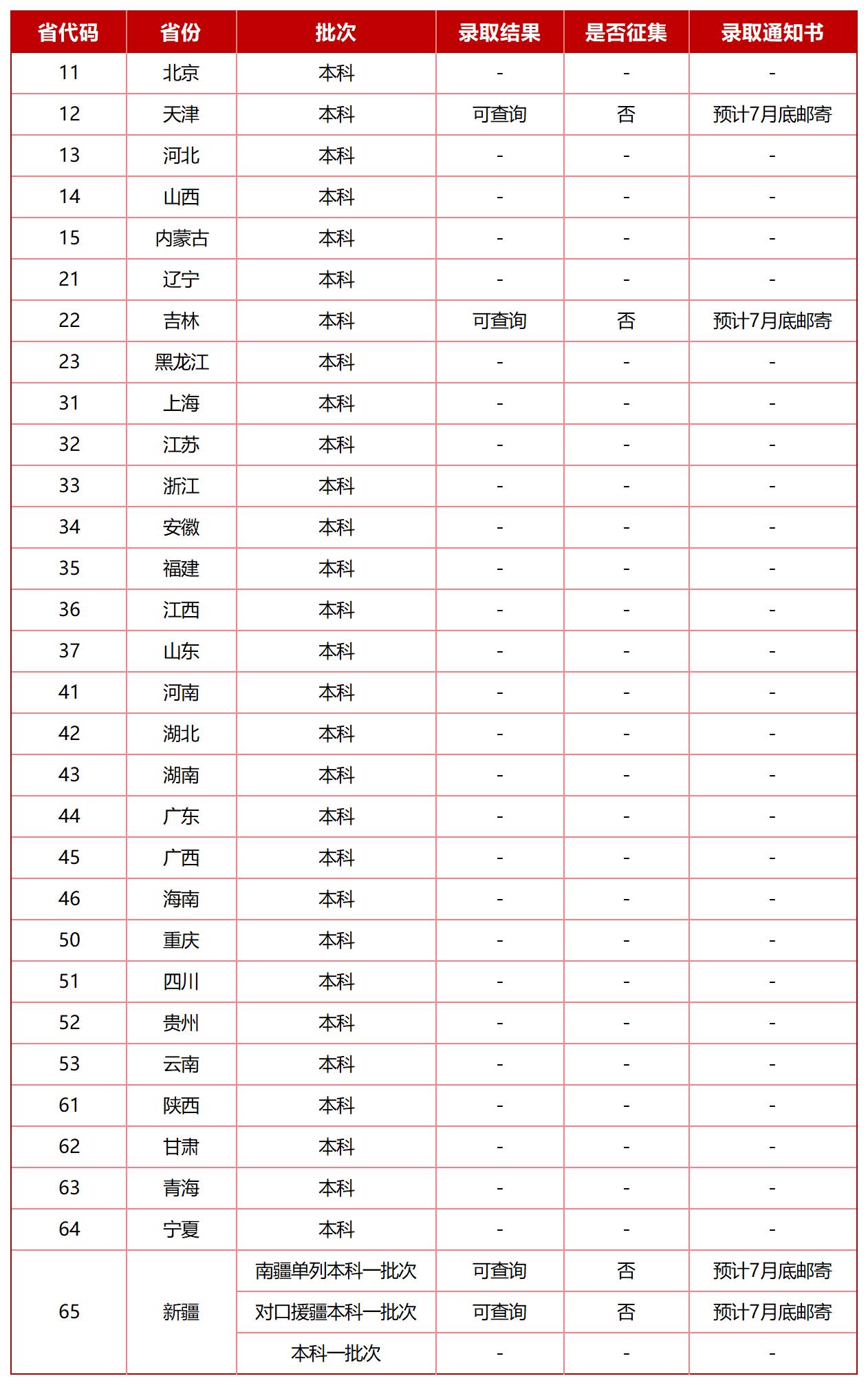 3.对于未公布录取结果的省份(批次),其录取工作将根据各省招生主管部门安排进行,考生们不必心急,请耐心等待。