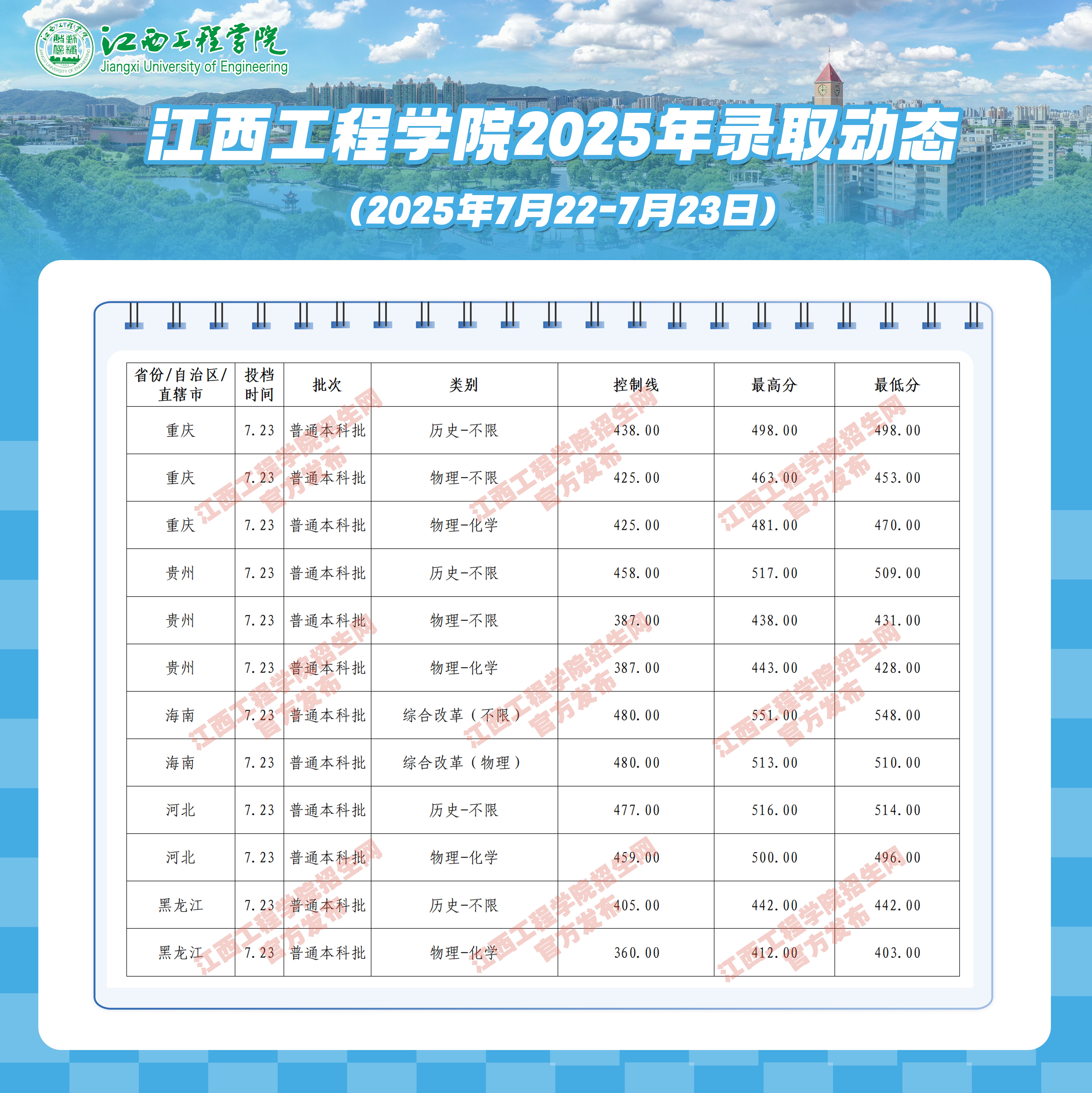 江西工程学院7月22日-7月23日录取动态