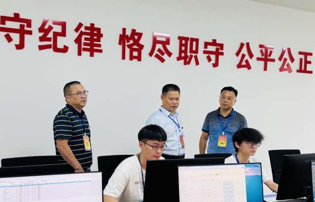 | 本站讯(招生就业处供稿)7月11日上午,校党委副书记、校长蔡海生专程来到学校普通高招远程录取中心工作现场巡视检查,看望慰问一线工作人员,并对2025年普通本科远程录取工作进行现场指导。招生就业处处长段军平、副处长黄义强等陪同并汇报了学校招生录取工作情况,党委(校长)办公室主任张国斌陪同。