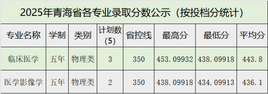 牡丹江医科大学2025年青海省各专业录取分数公示(按投档分统计)