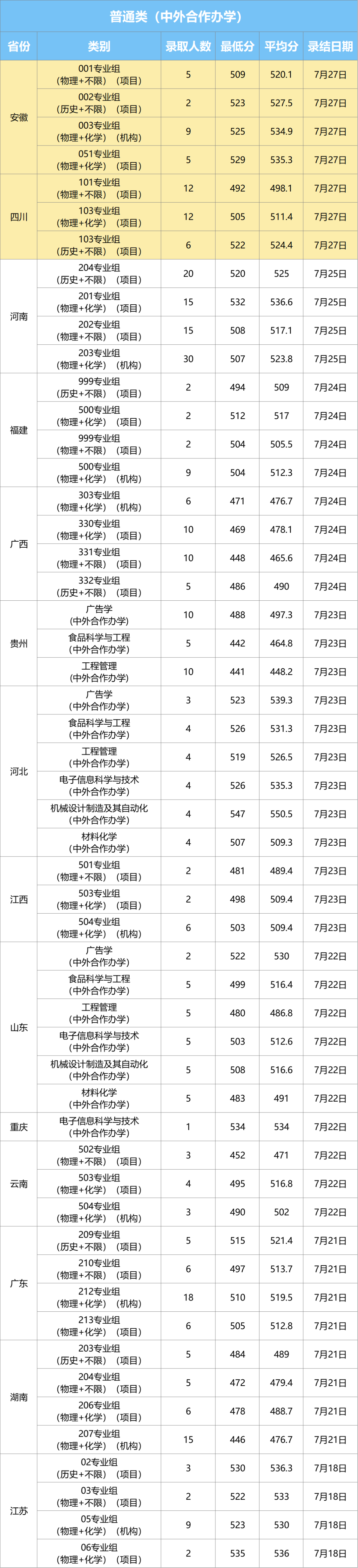 截至7月27日,部分省(区、市)部分类型已录取结束,现将录取信息公布如下: