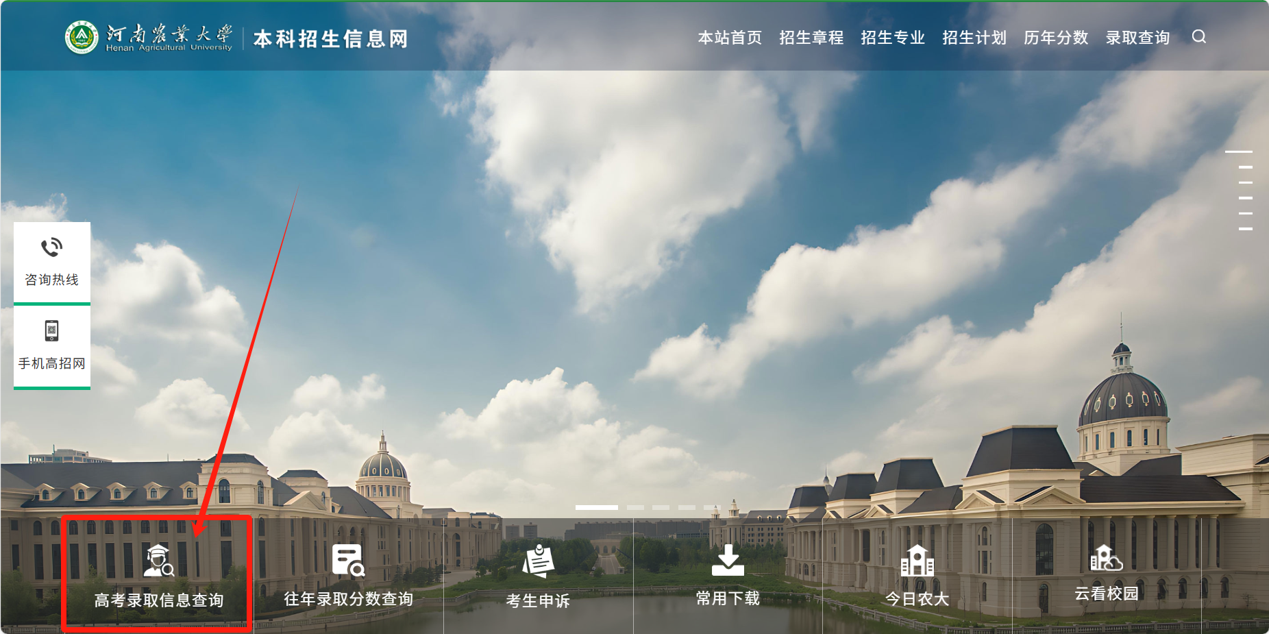 1.打开河南农业大学招生信息网(https://zs.henau.edu.cn/index.html);