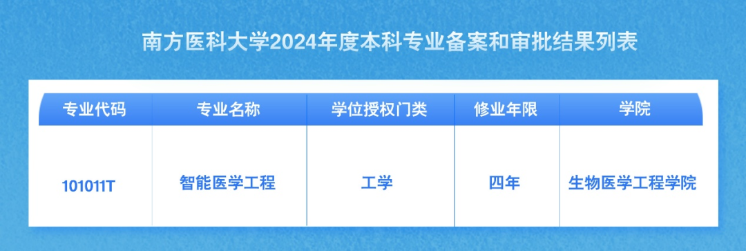 南方医科大学此次新开设的智能医学工程专业,招生科类为理科,学制为四年,毕业将授予工学学士学位。主干学科包含信号与系统、电路分析基础、模拟电子技术、数字电子技术等。核心课程包括智能医学影像学、人工智能原理与方法、医学手术导航工程等。