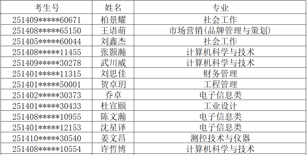 恭喜以下考生已投档到我校: