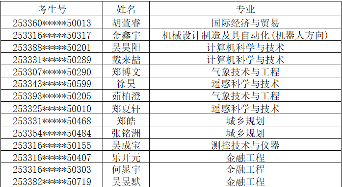 恭喜以下考生已投档到我校: