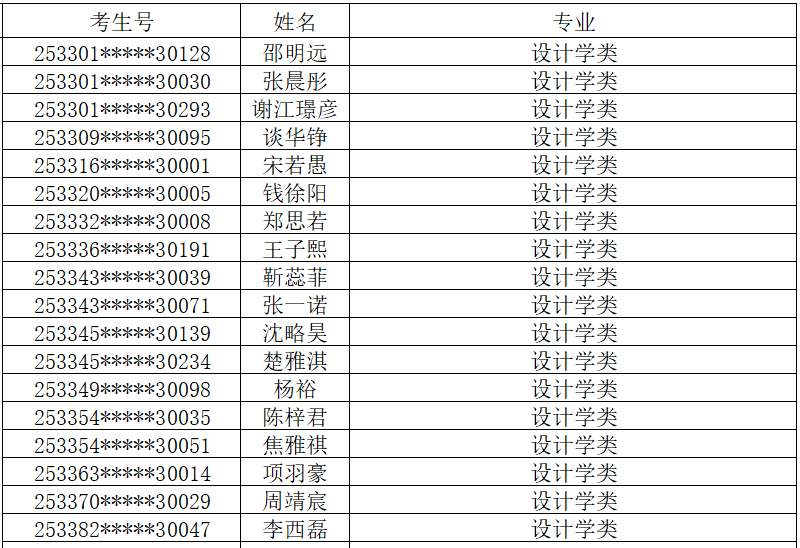 恭喜以下考生已投档到我校: