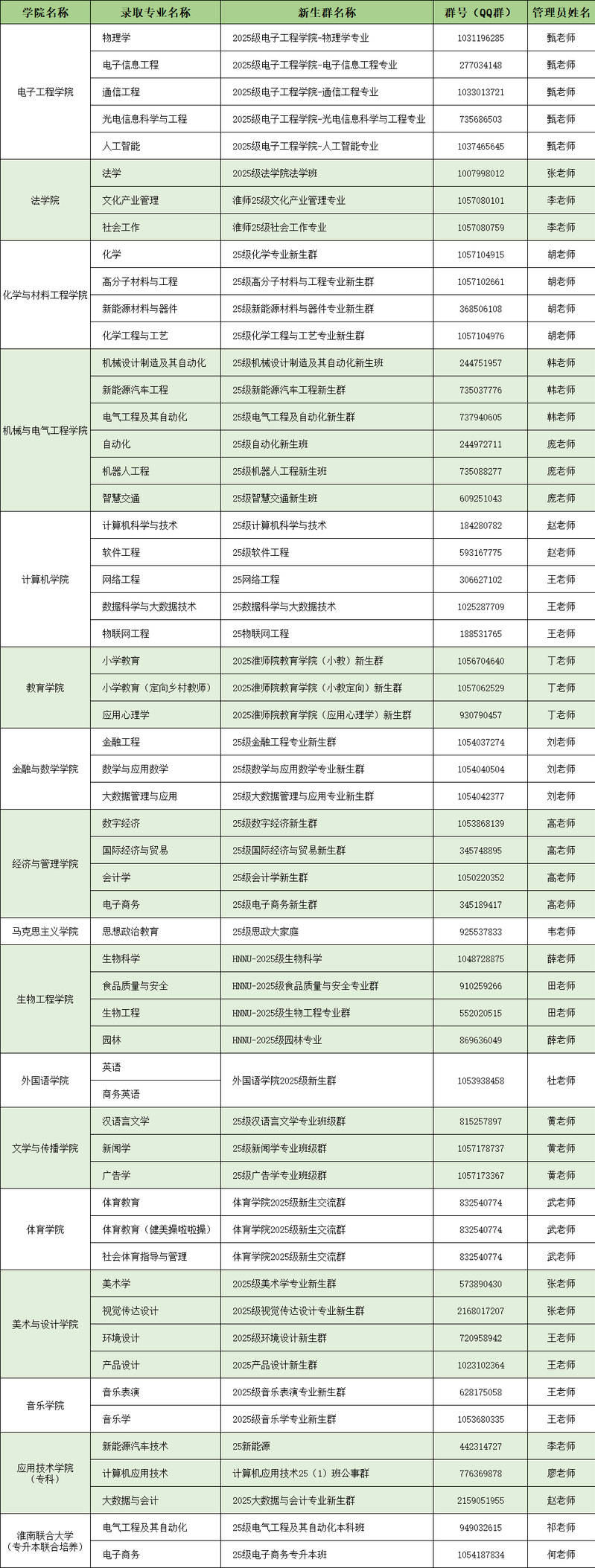 请务必根据你被录取的学院和专业,查阅下方表格,找到对应的官方专业群并申请加入。