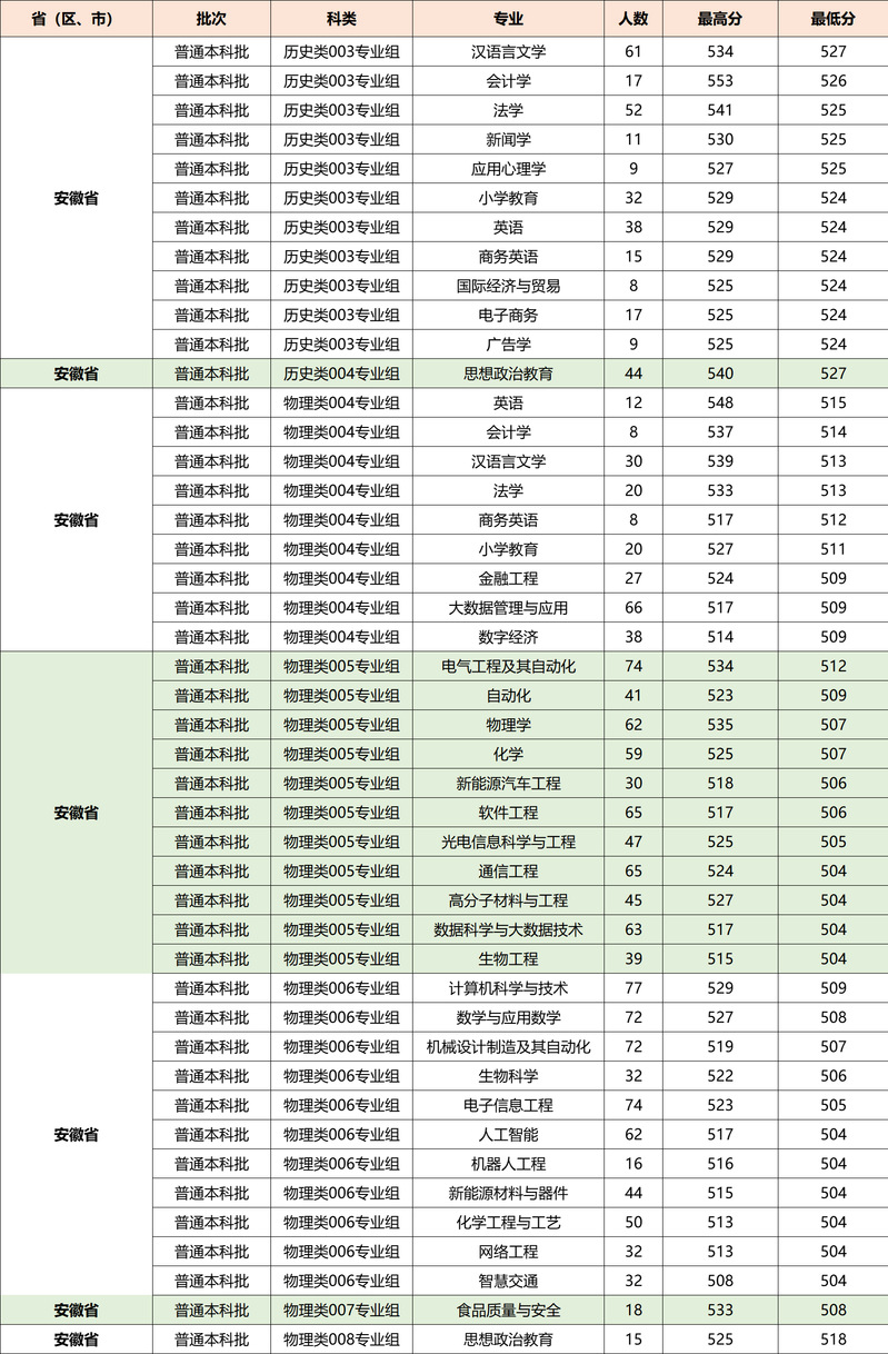 7月24日-27日,我校完成安徽省普通本科批的录取工作。具体录取情况如下: