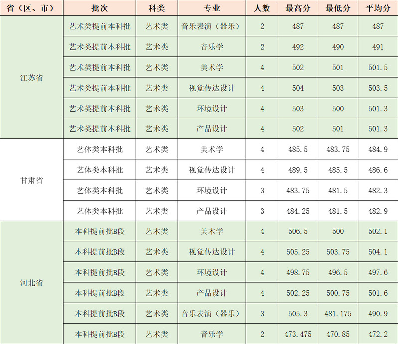 的录取工作。7月13日-14日,我校完成江苏艺术类、甘肃艺术类、河北艺术类的录取工作。录取结果一般将在该批次录取结束后先通过各省(自治区、直辖市)教育招生主管部门官网查询。