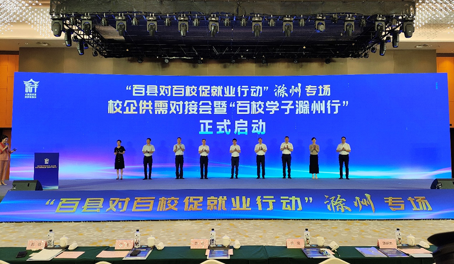 根据教育部2025届高校毕业生就业“百日冲刺”行动工作部署,7月21日,“百县对百校促就业行动”滁州专场校企供需对接会暨“百校学子滁州行”活动在滁举办。全国129所高校相关负责同志及优秀学生代表参会,滁州学院党委书记周旭参加启动仪式并讲话。