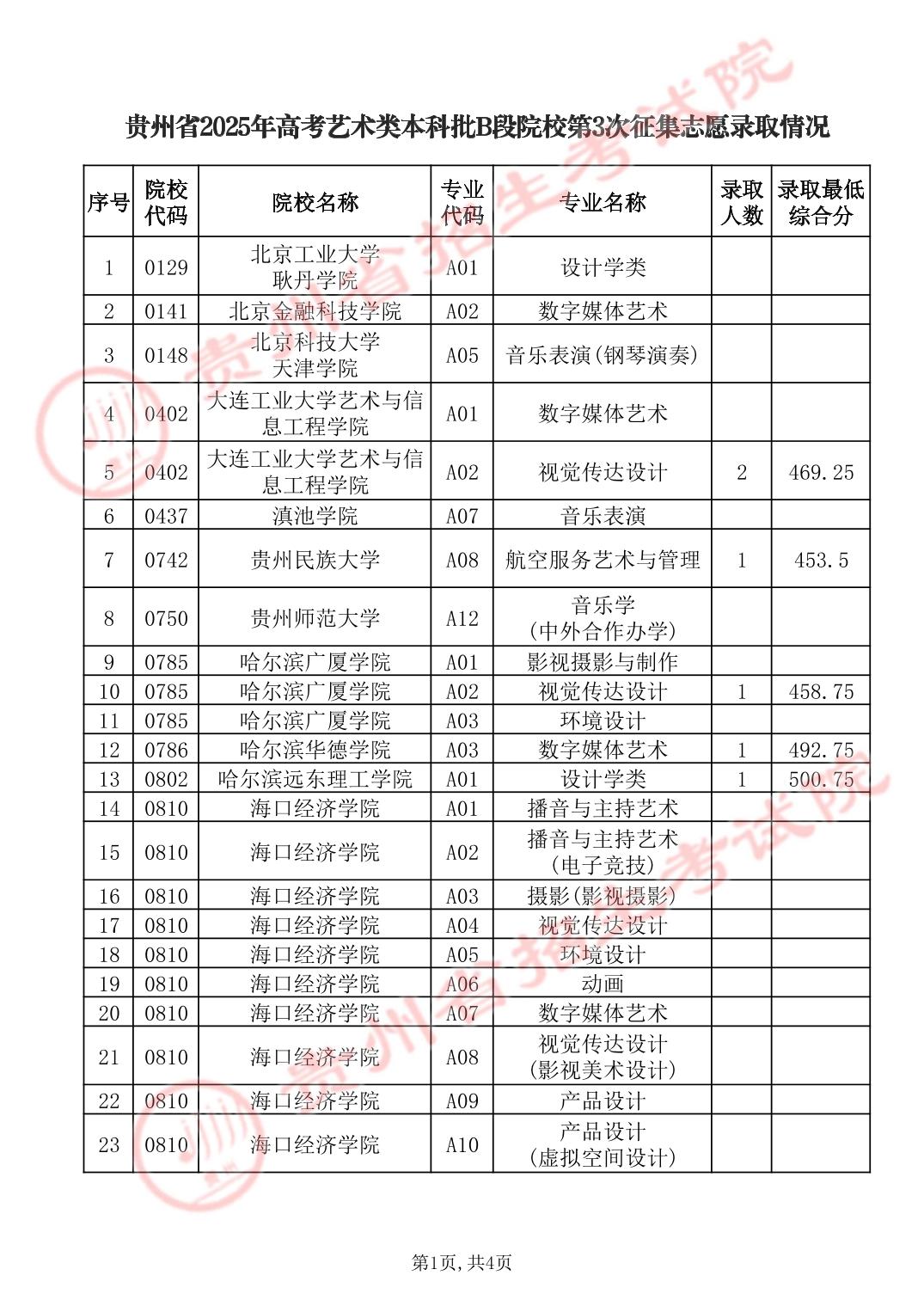 贵州省2025年高考艺术类本科批B段院校第3次征集志愿录取情况.pdf