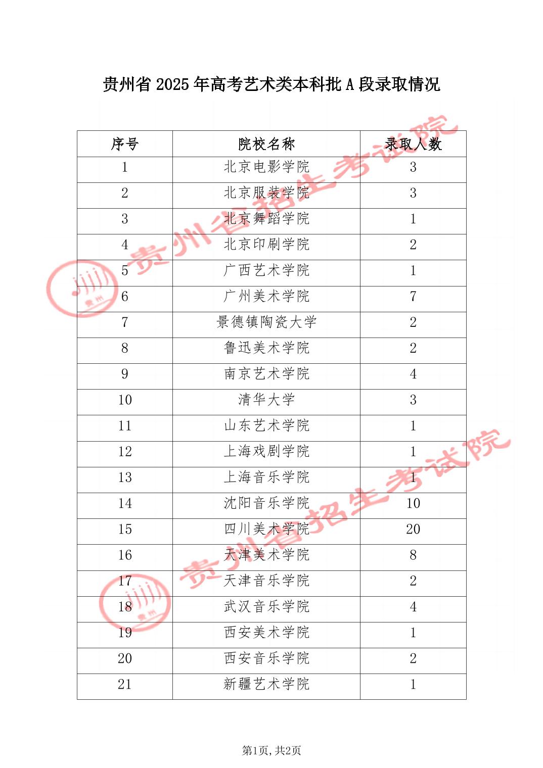贵州省2025年高考艺术类本科批A段录取情况.pdf