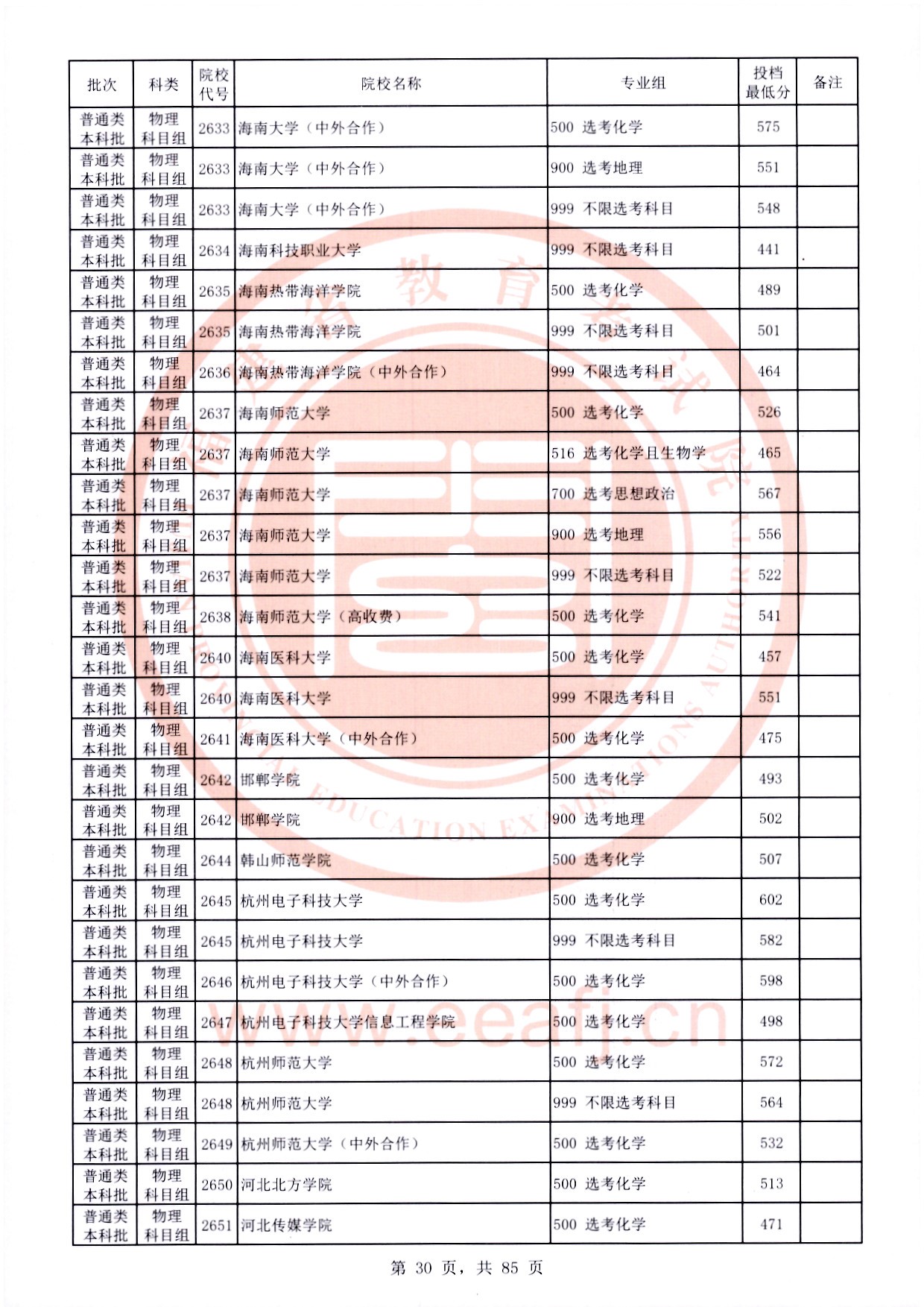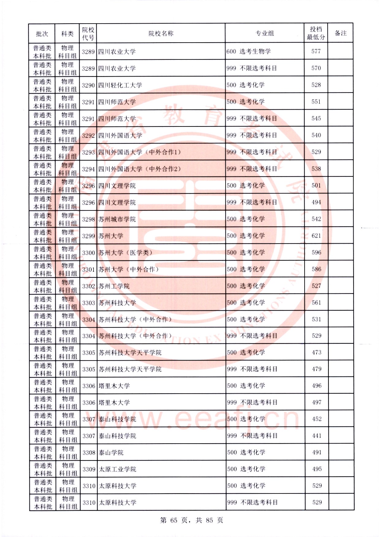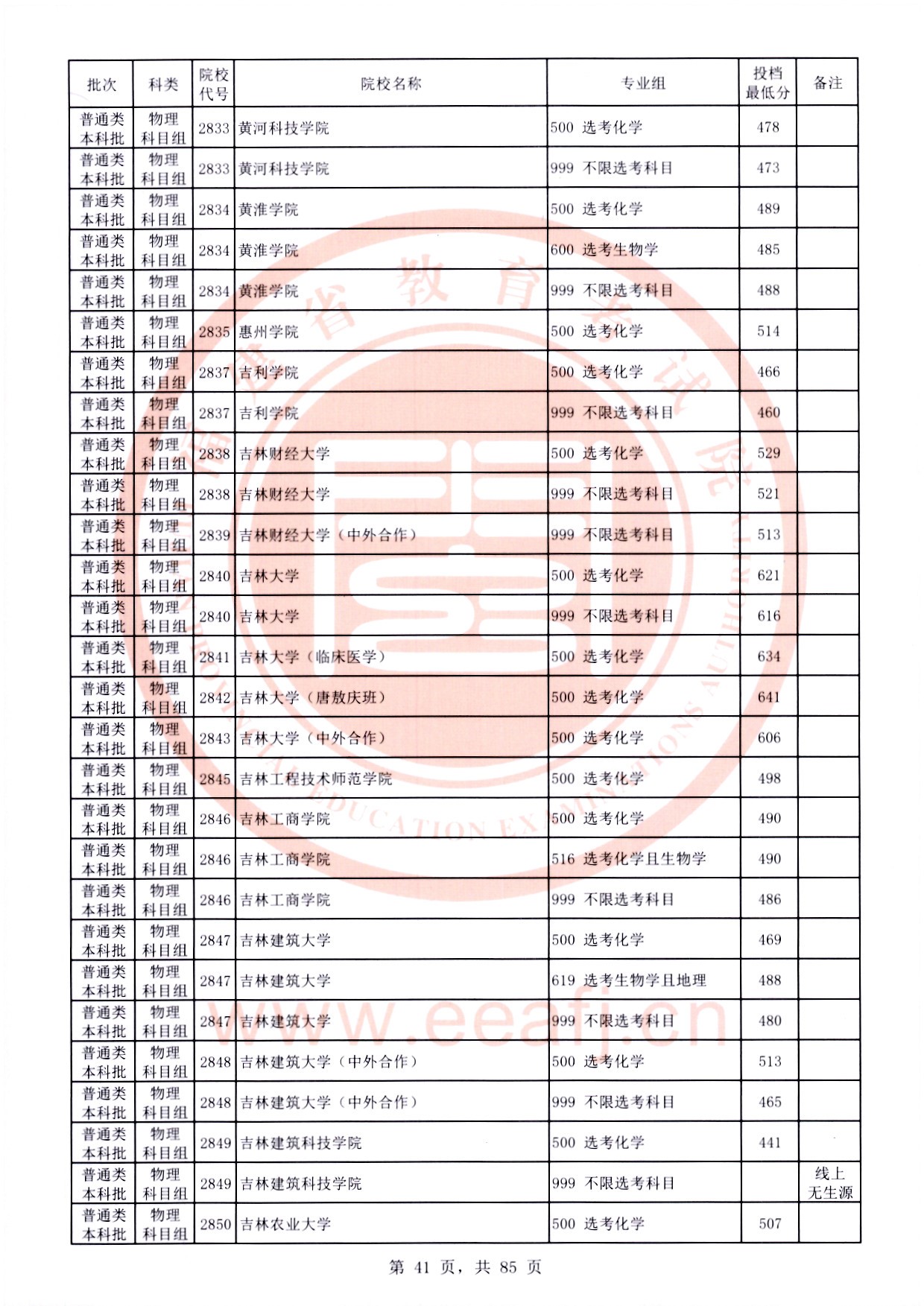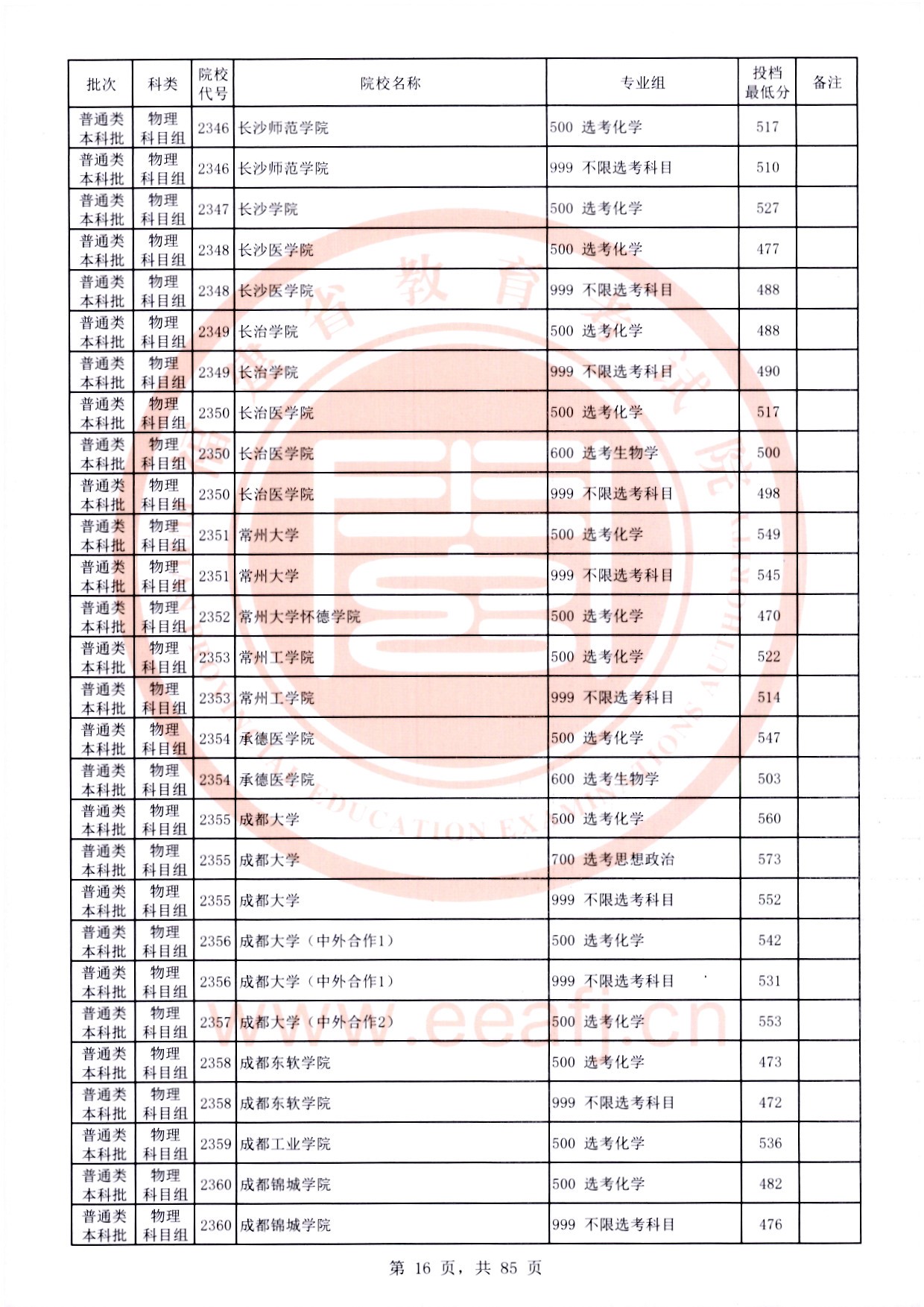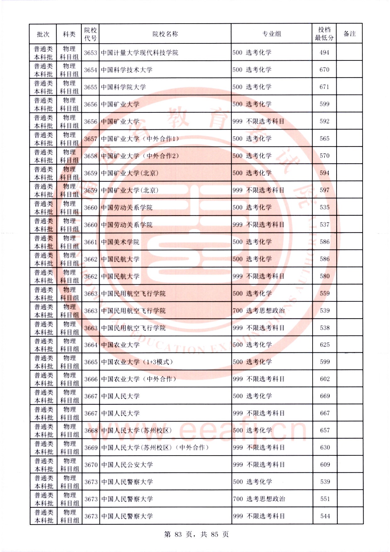 2025年普通类本科批常规志愿院校专业组投档最低分公布(物理科目组)