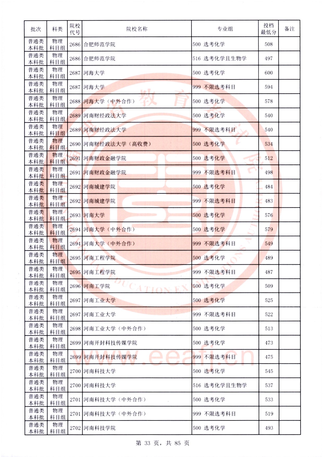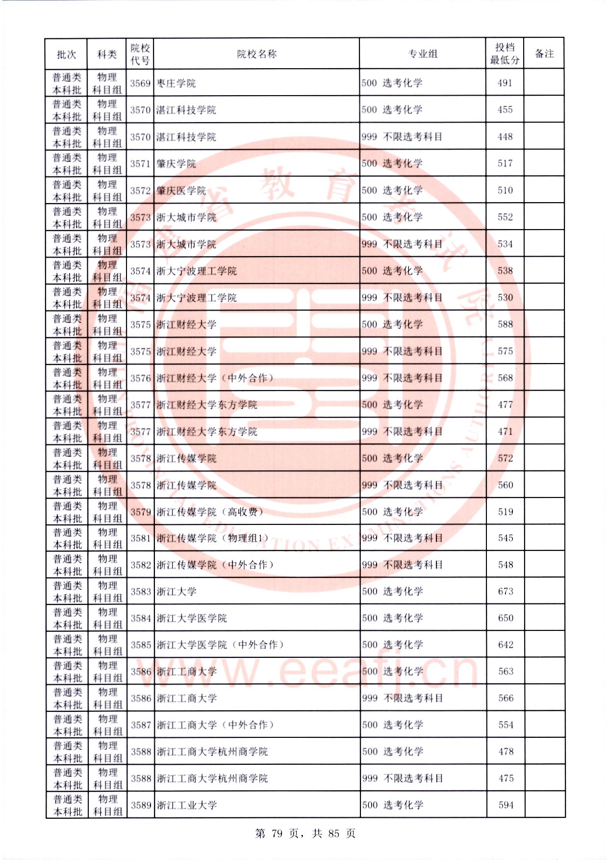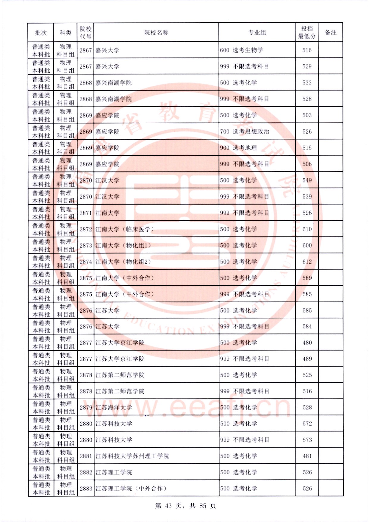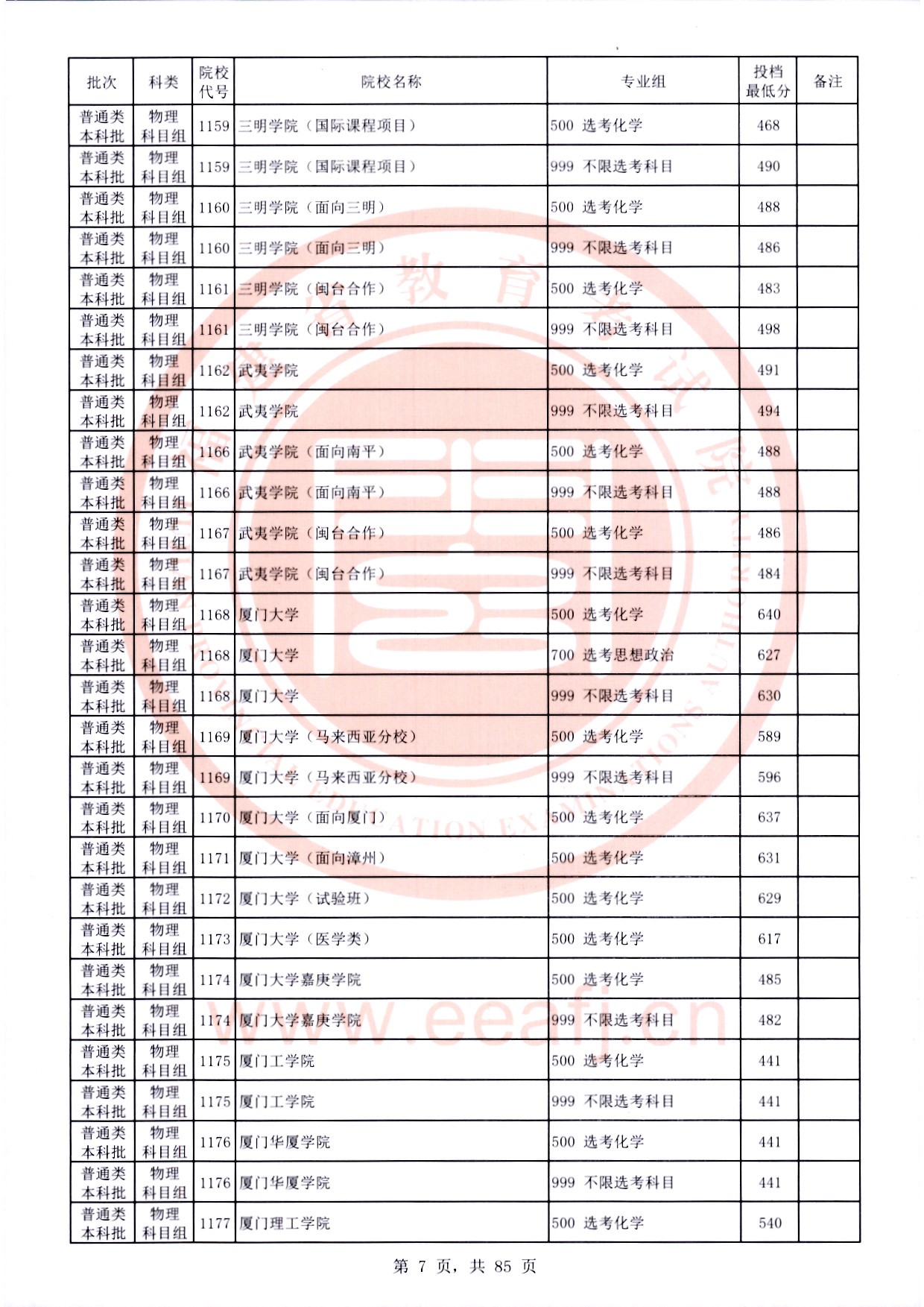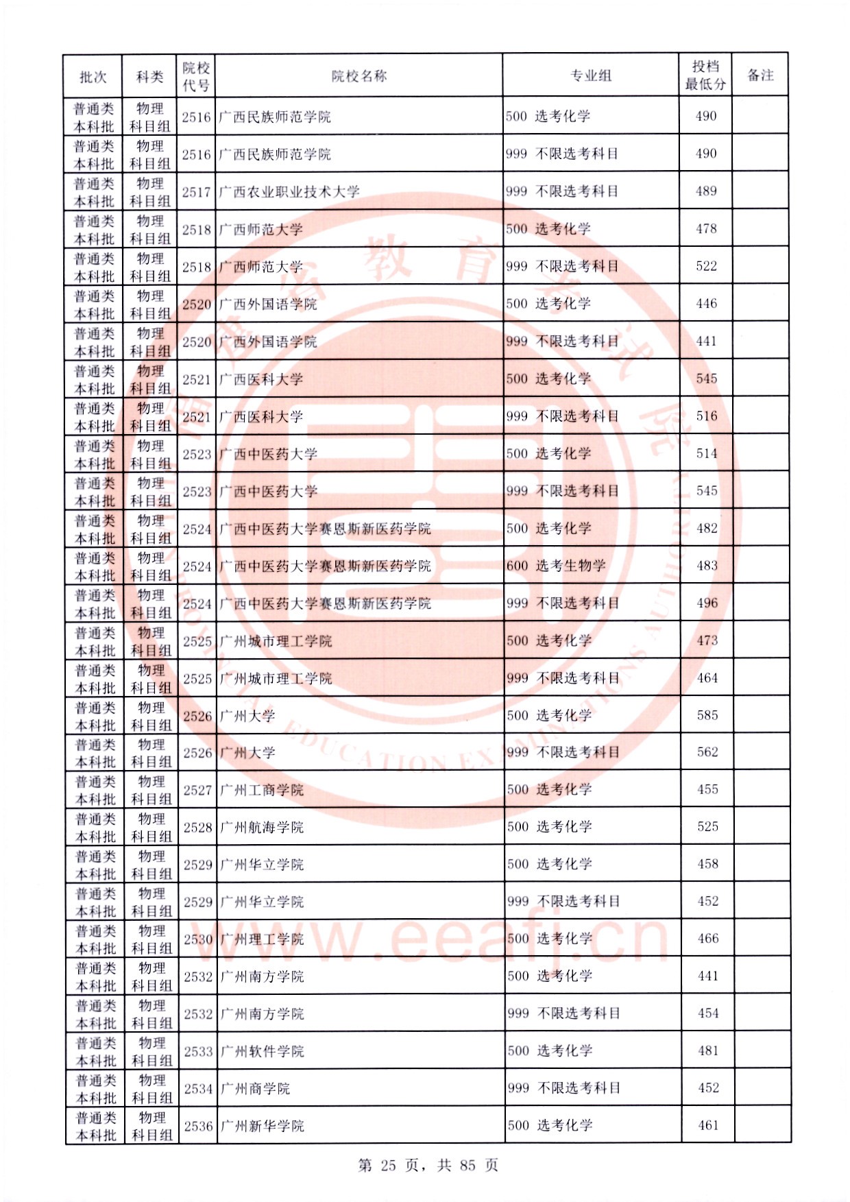 2025年普通类本科批常规志愿院校专业组投档最低分公布(物理科目组)