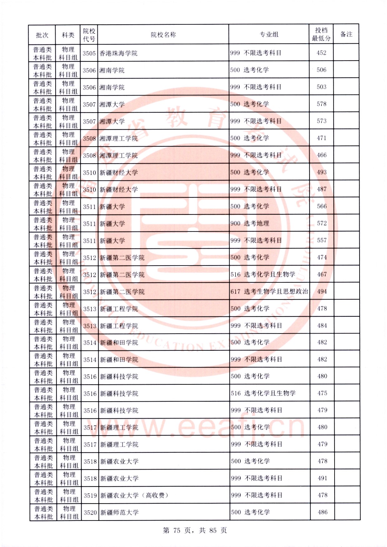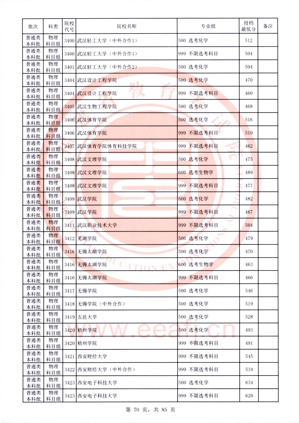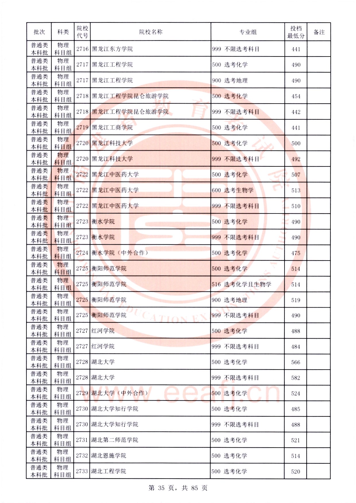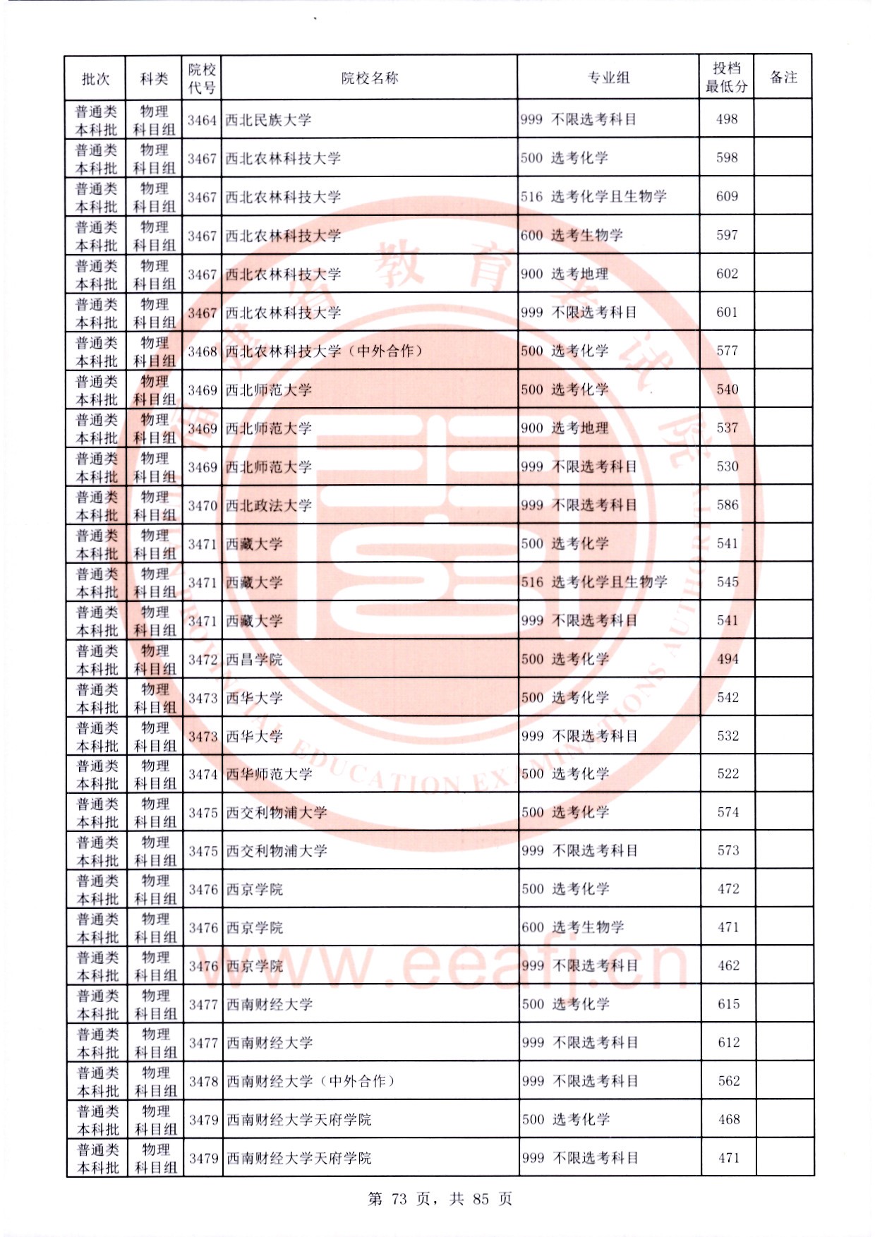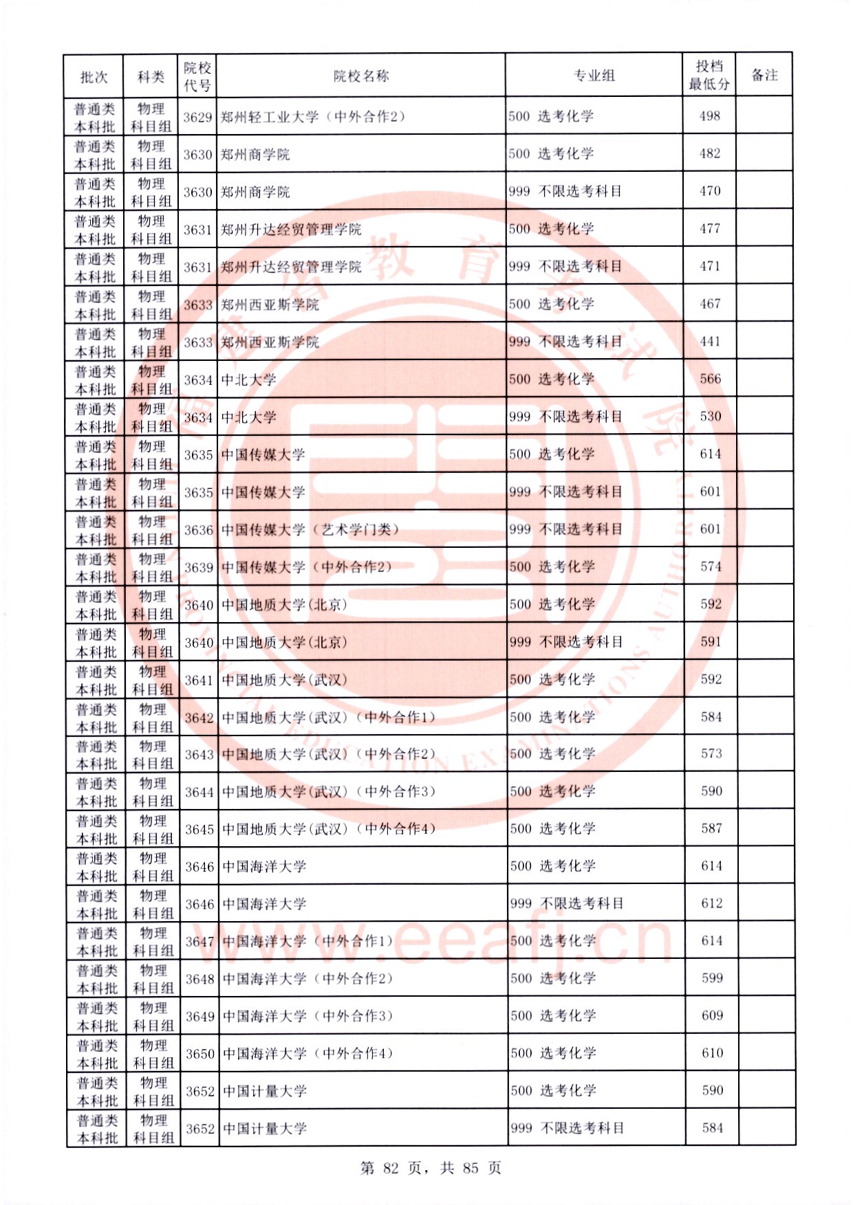 2025年普通类本科批常规志愿院校专业组投档最低分公布(物理科目组)