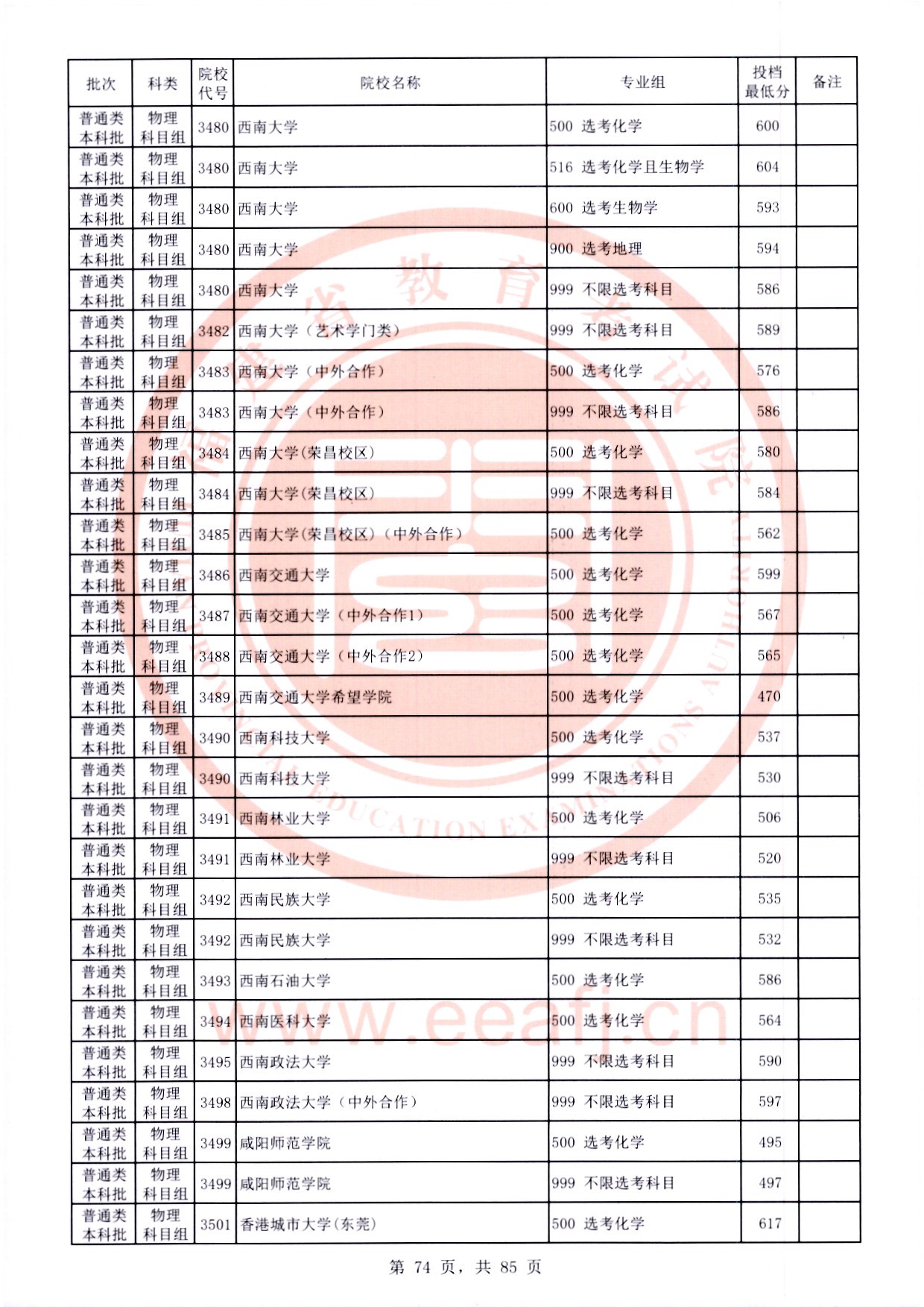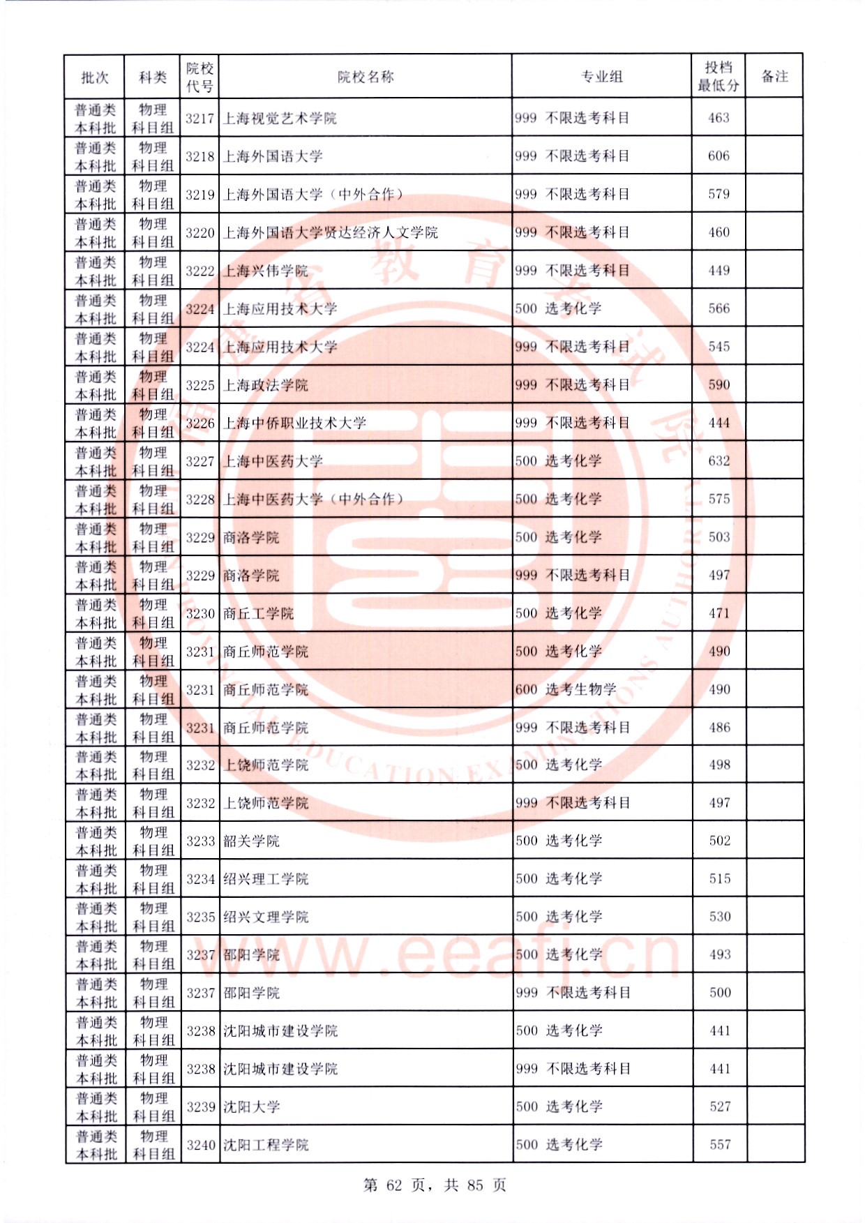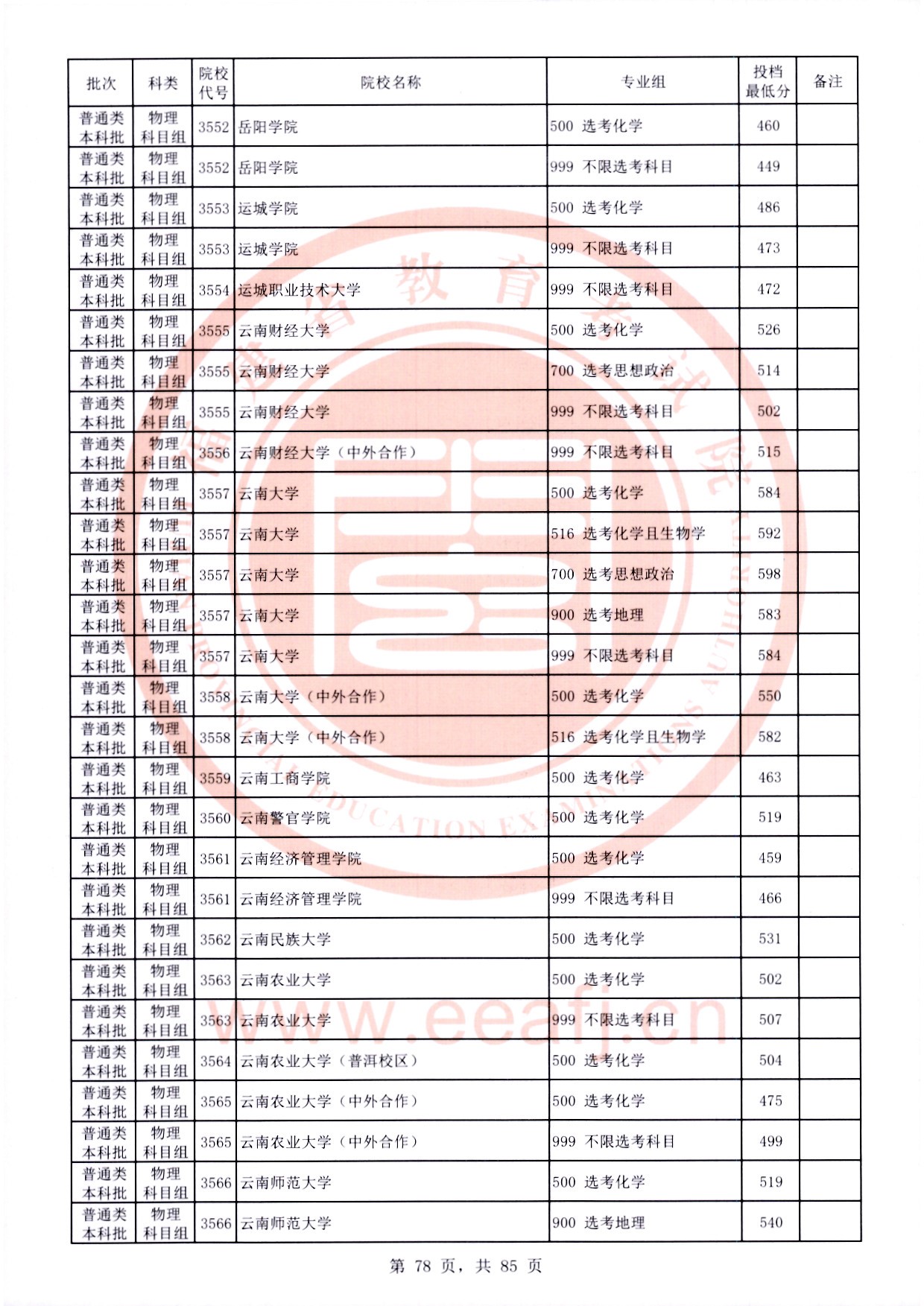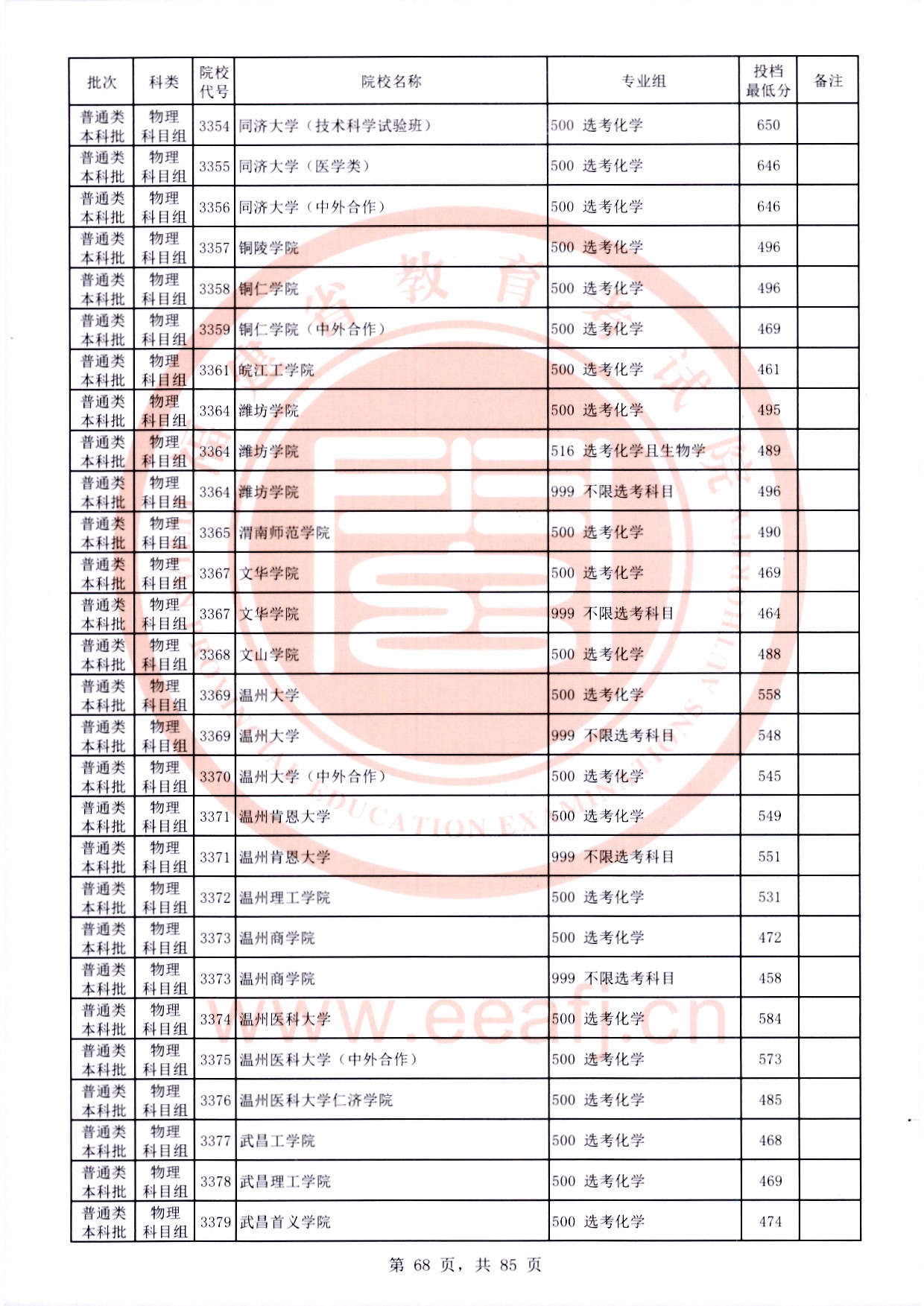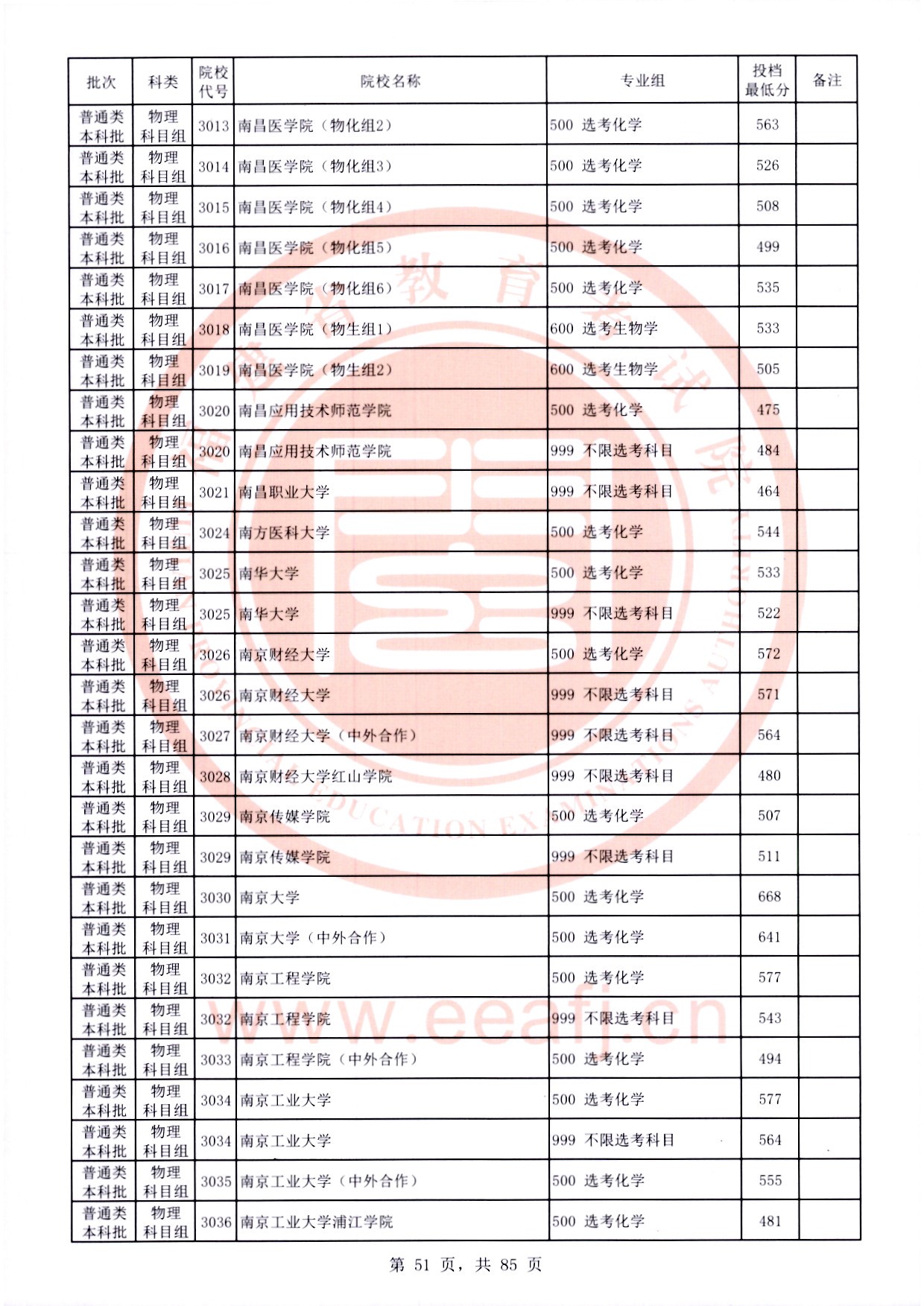 2025年普通类本科批常规志愿院校专业组投档最低分公布(物理科目组)