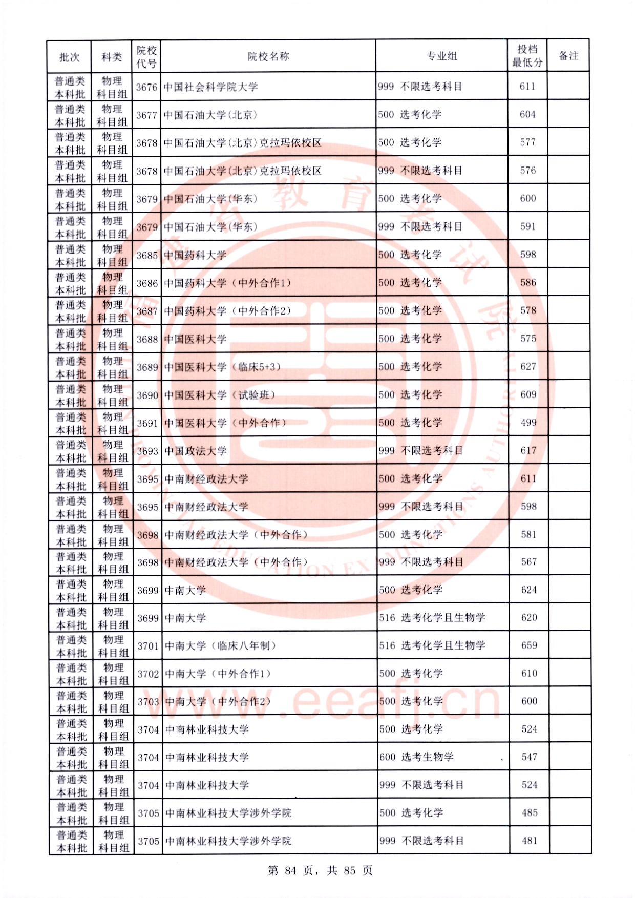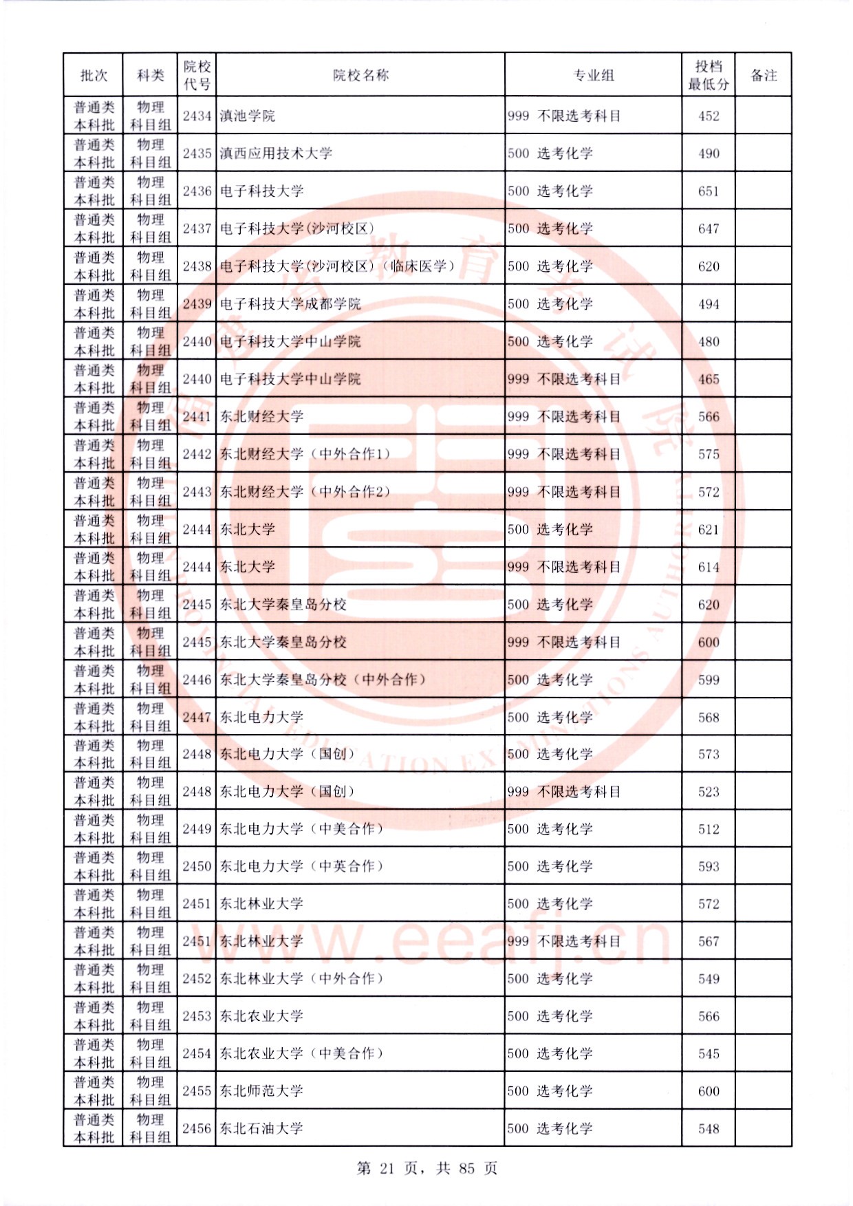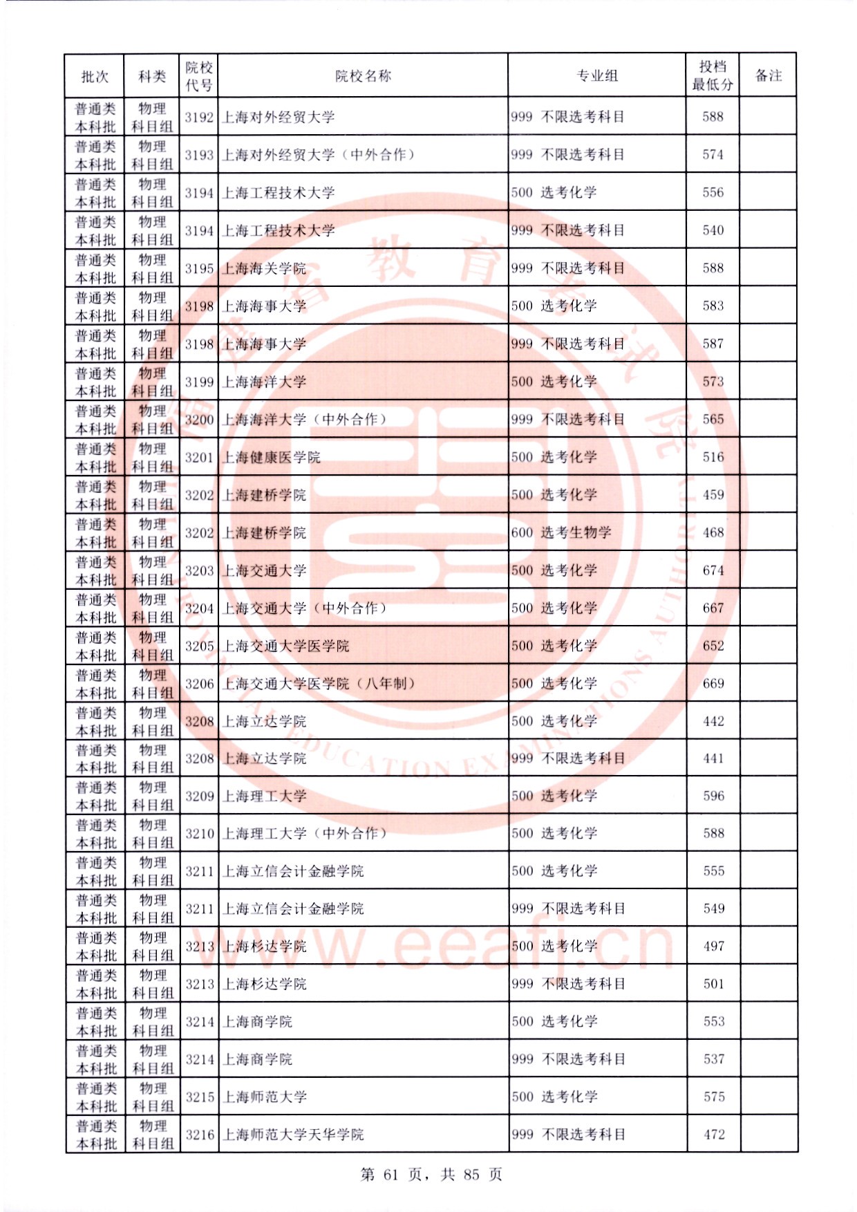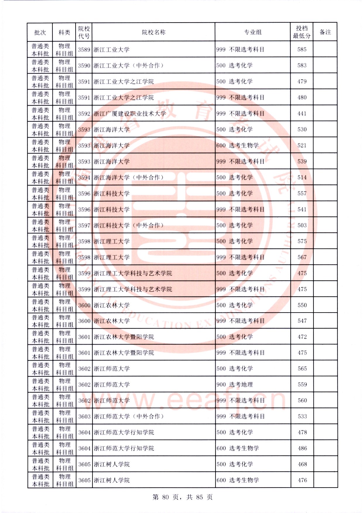 2025年普通类本科批常规志愿院校专业组投档最低分公布(物理科目组)