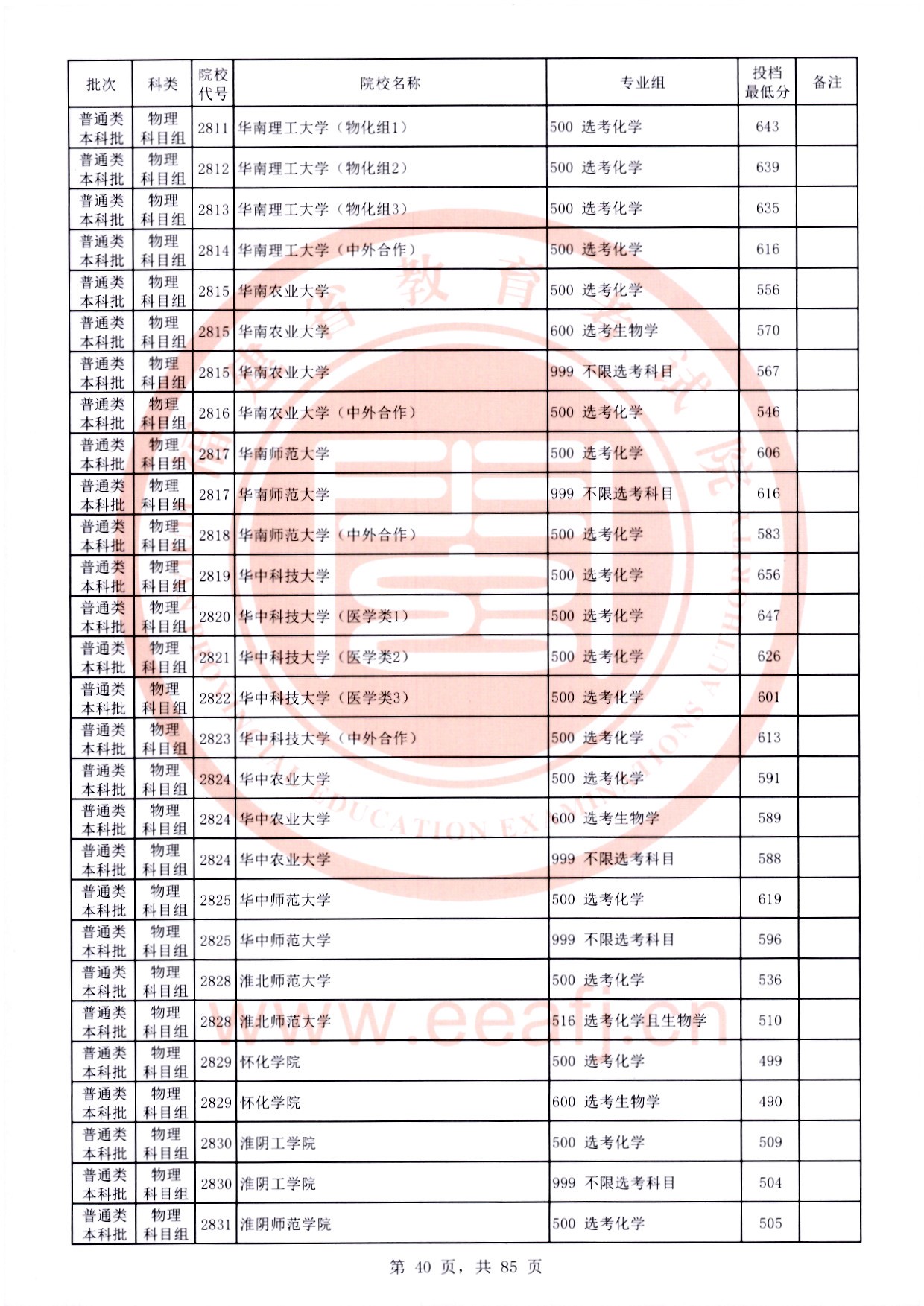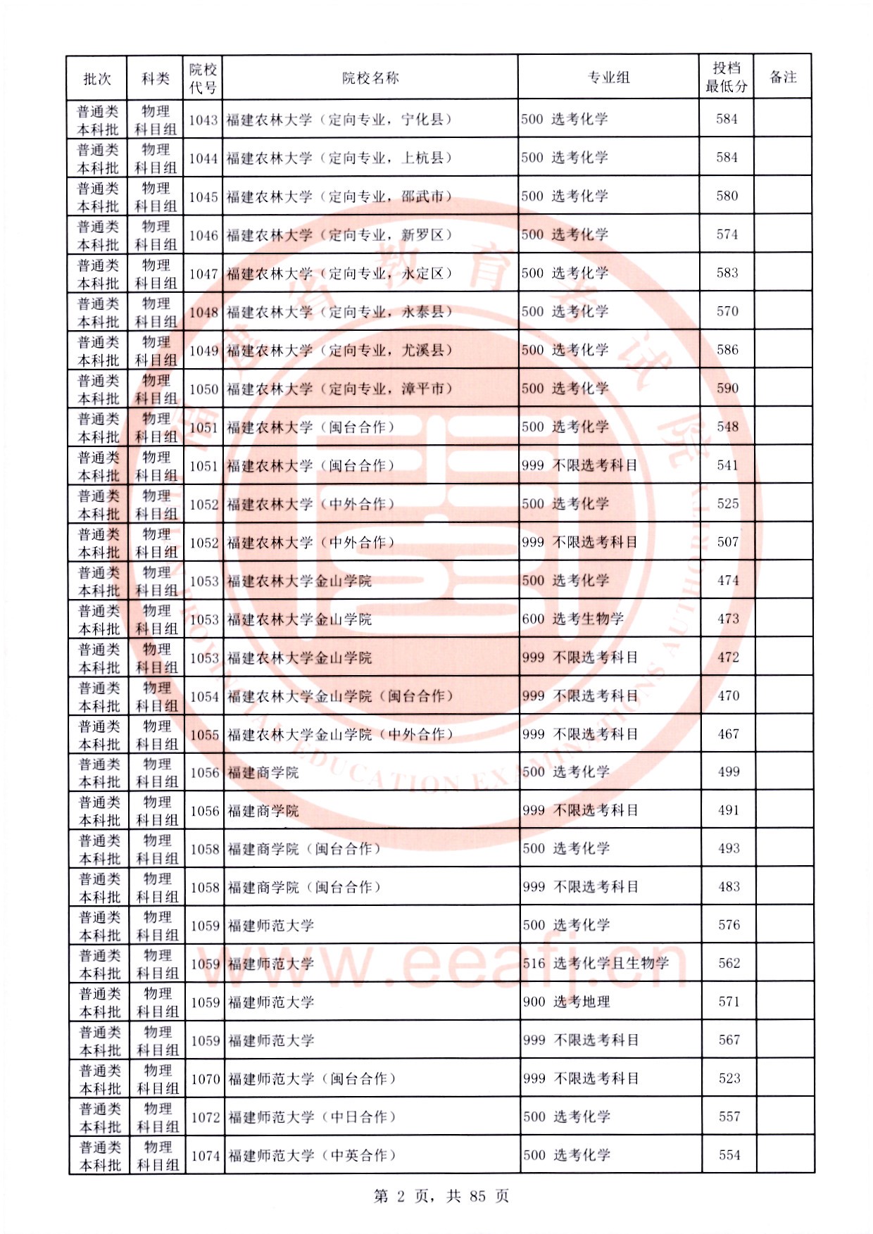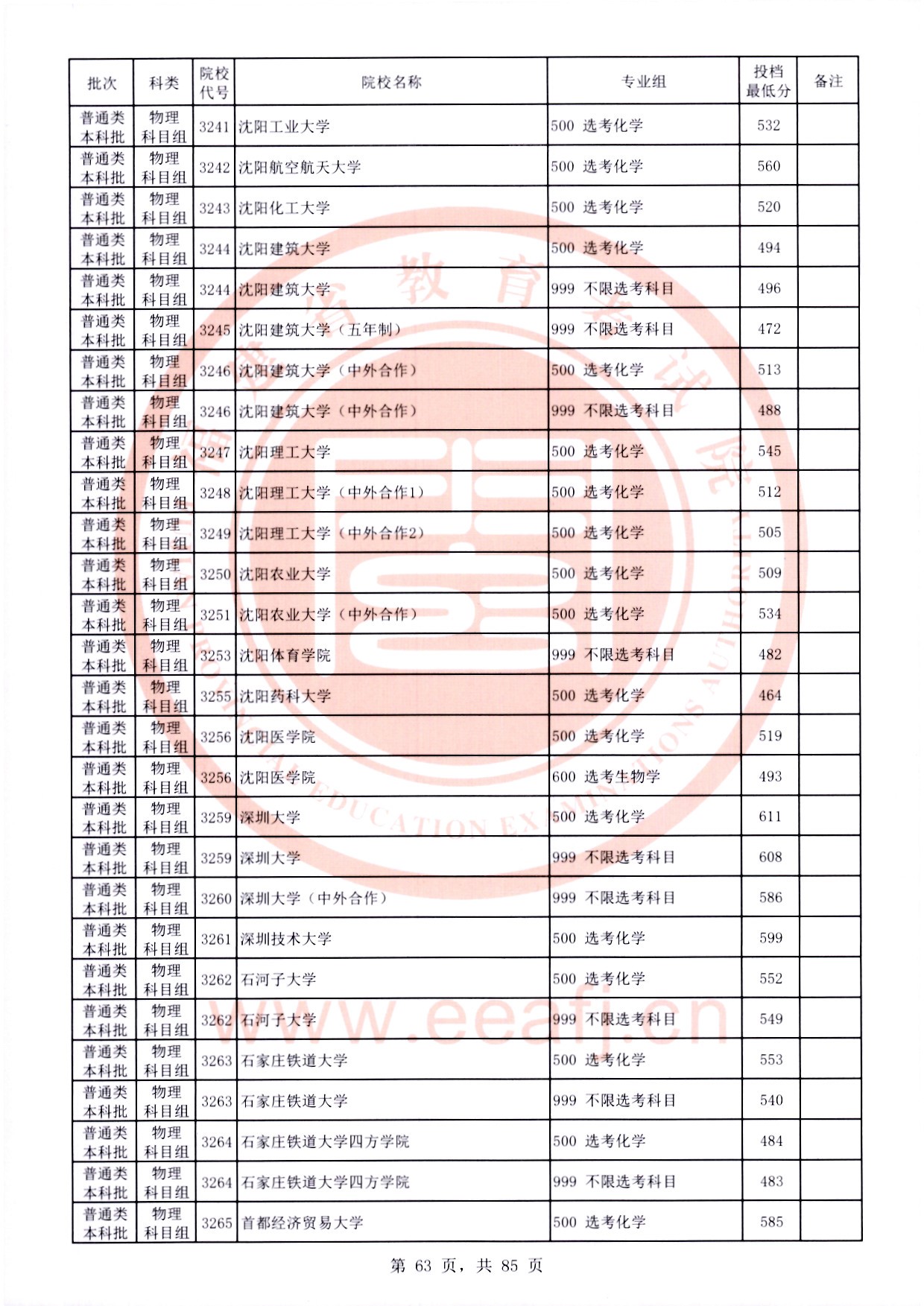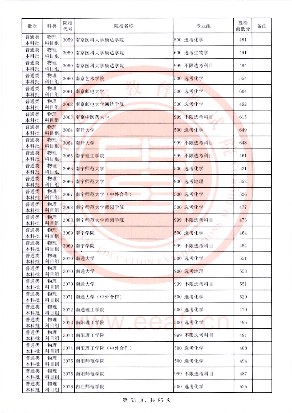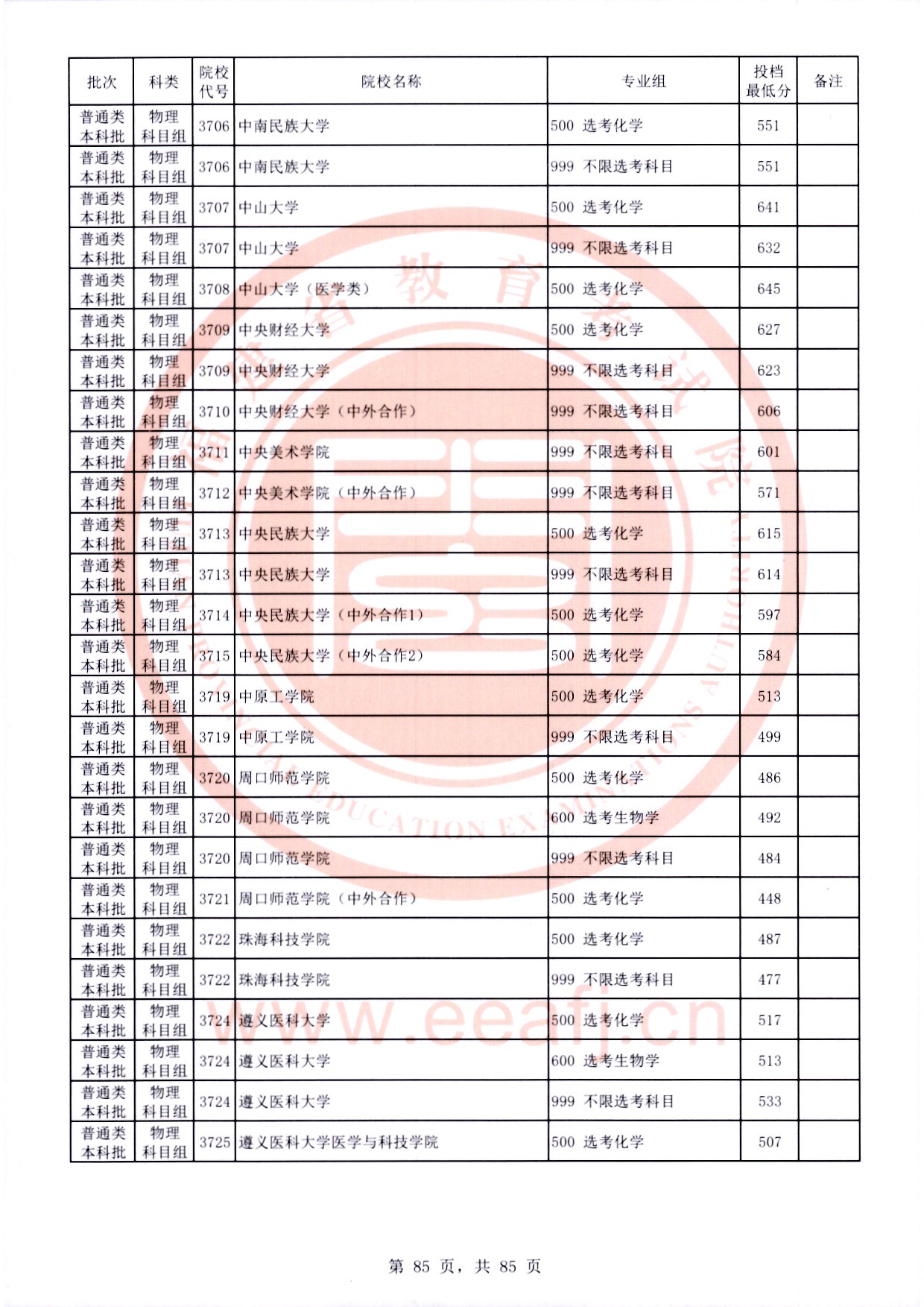 2025年普通类本科批常规志愿院校专业组投档最低分公布(物理科目组)