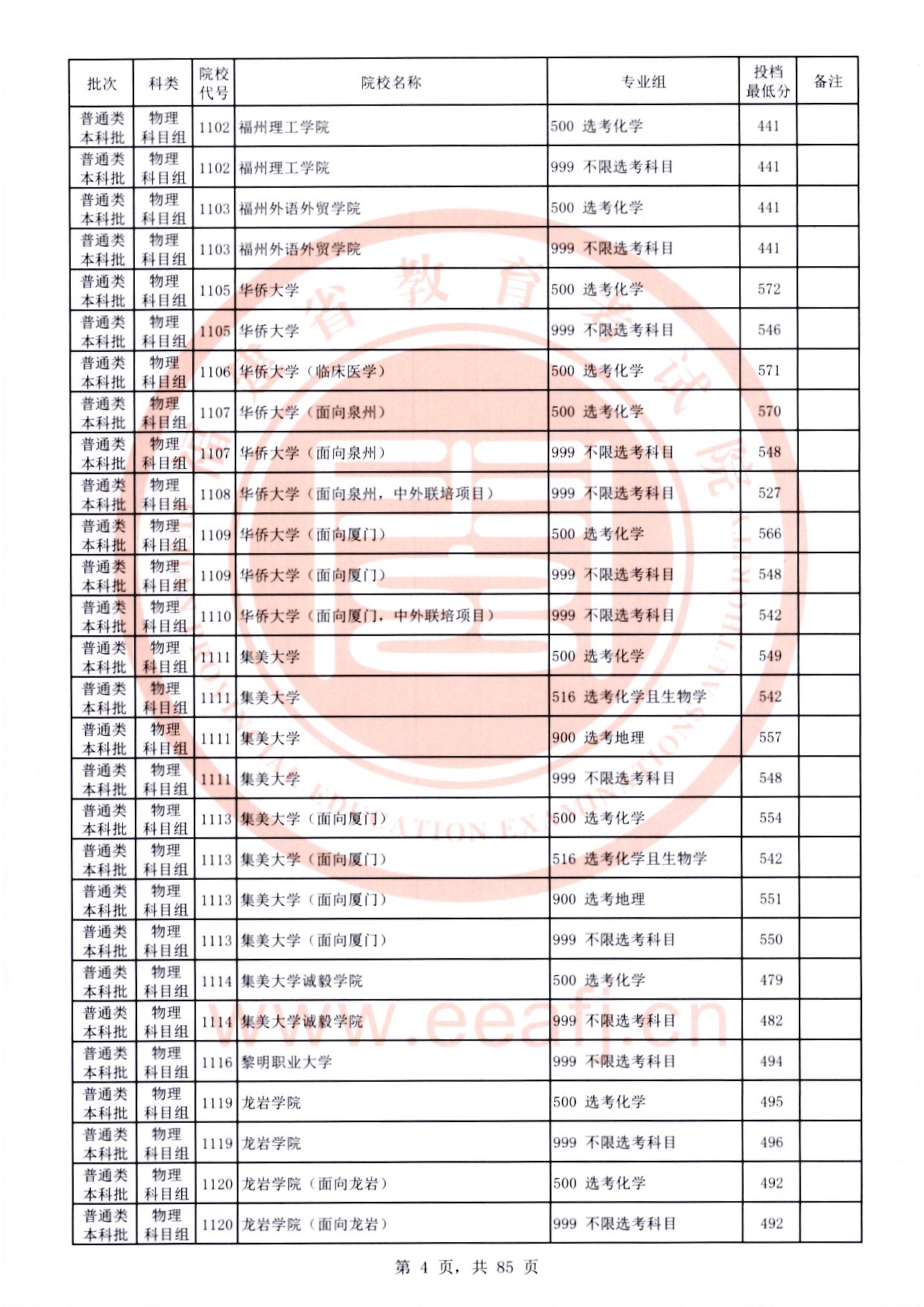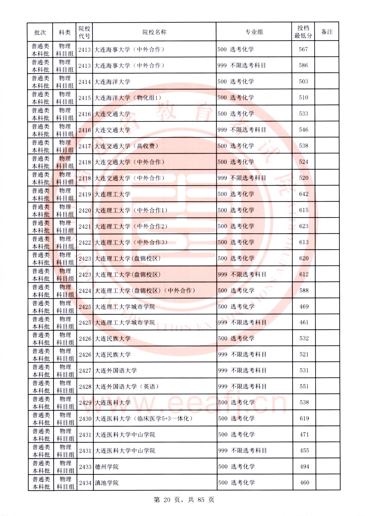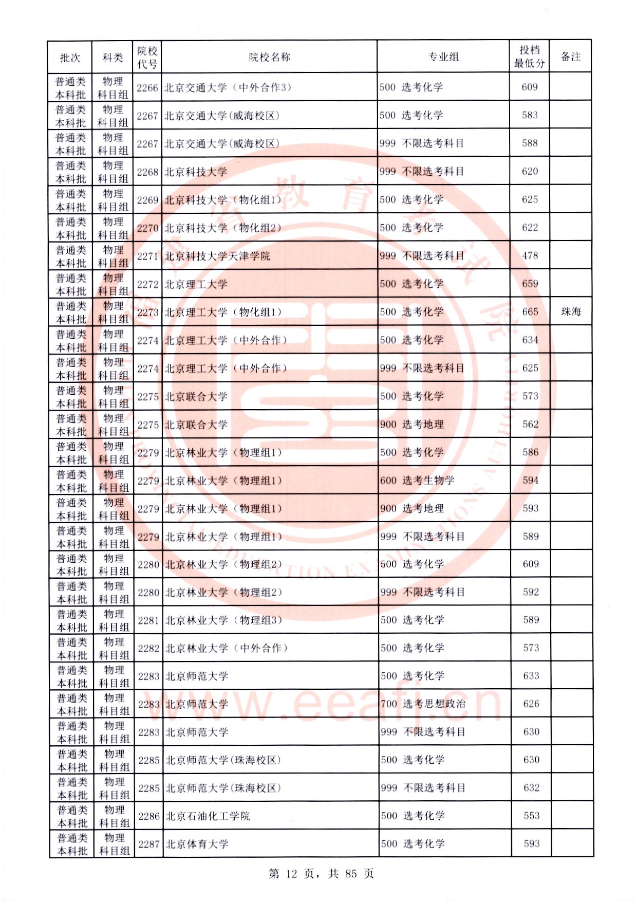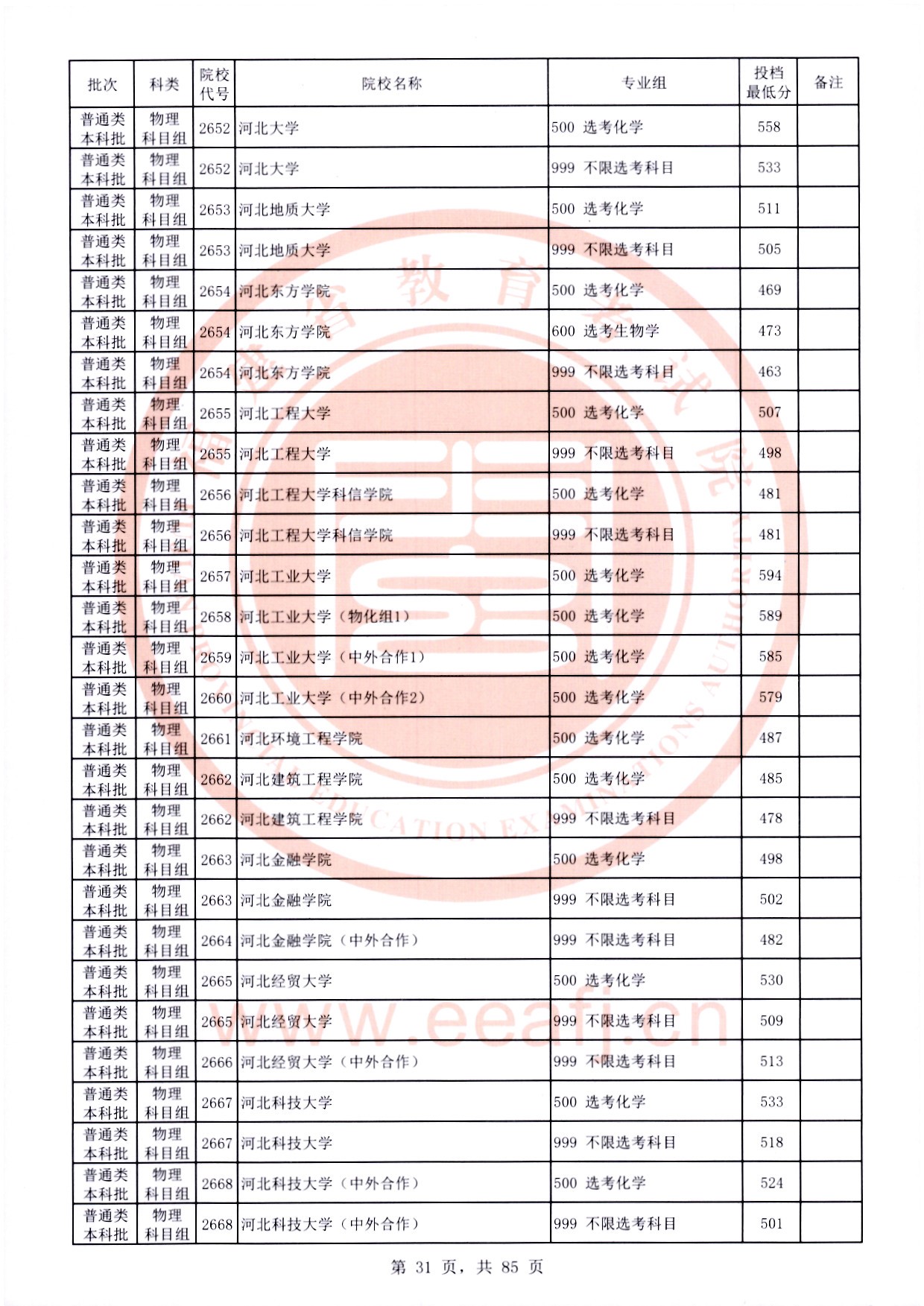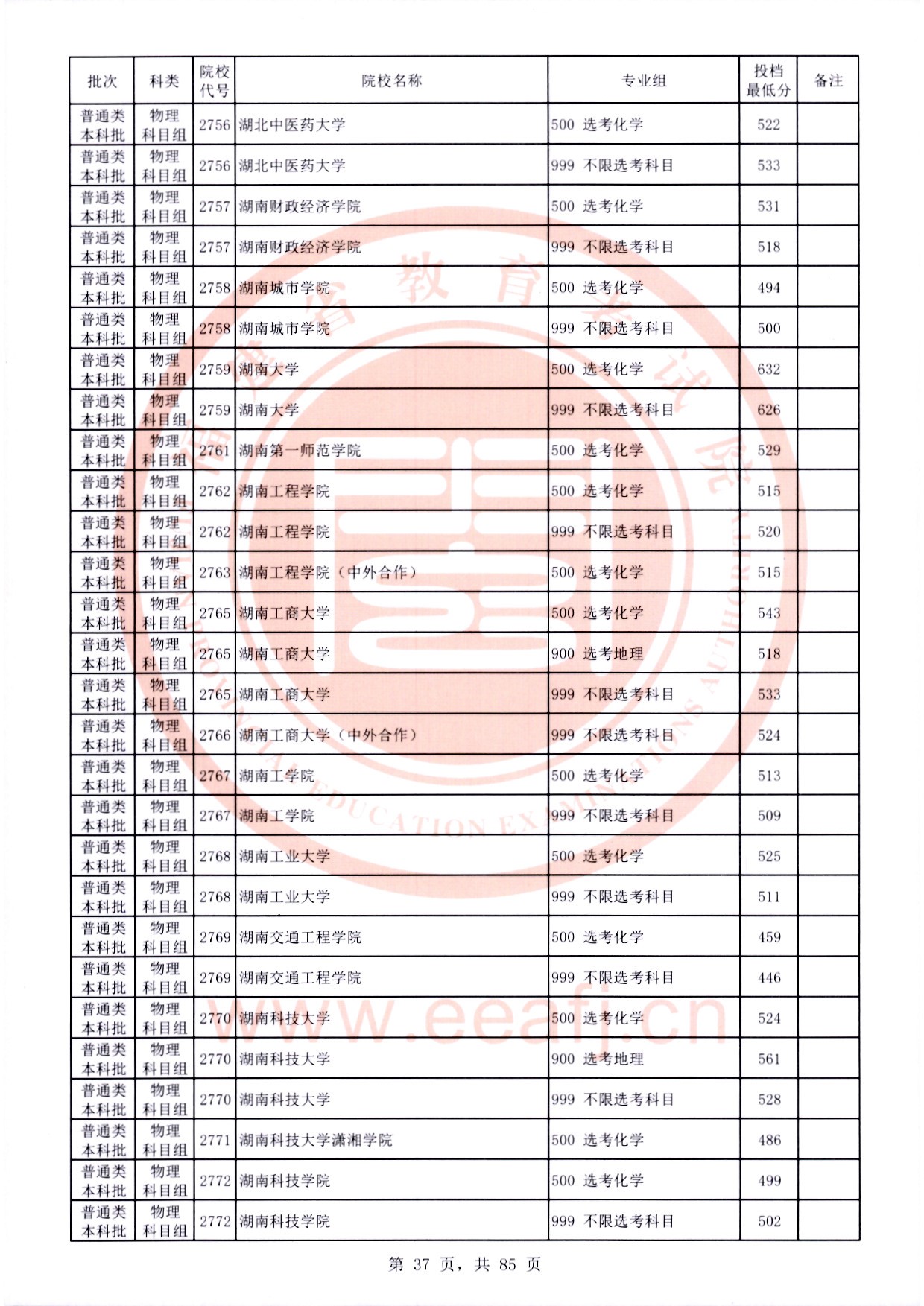 2025年普通类本科批常规志愿院校专业组投档最低分公布(物理科目组)