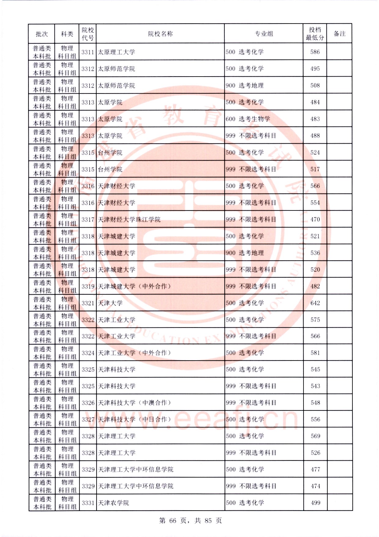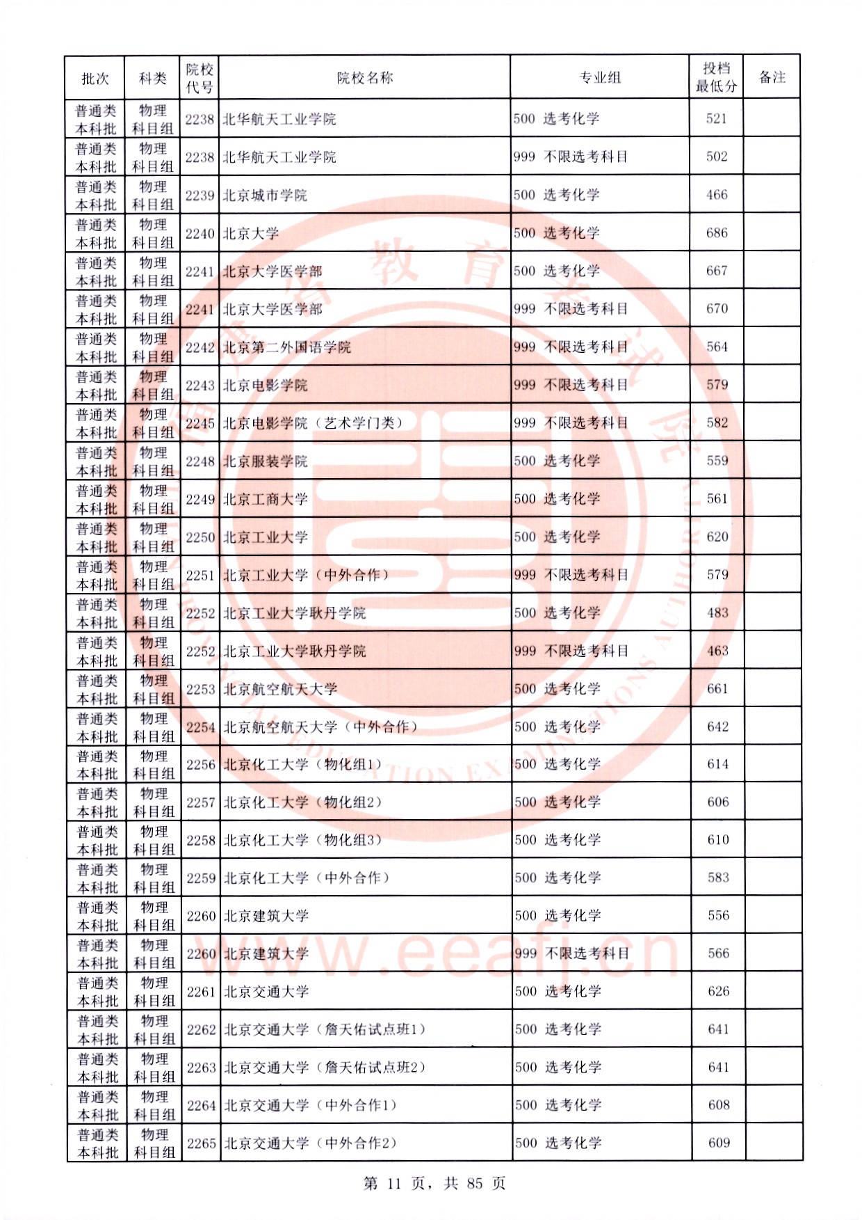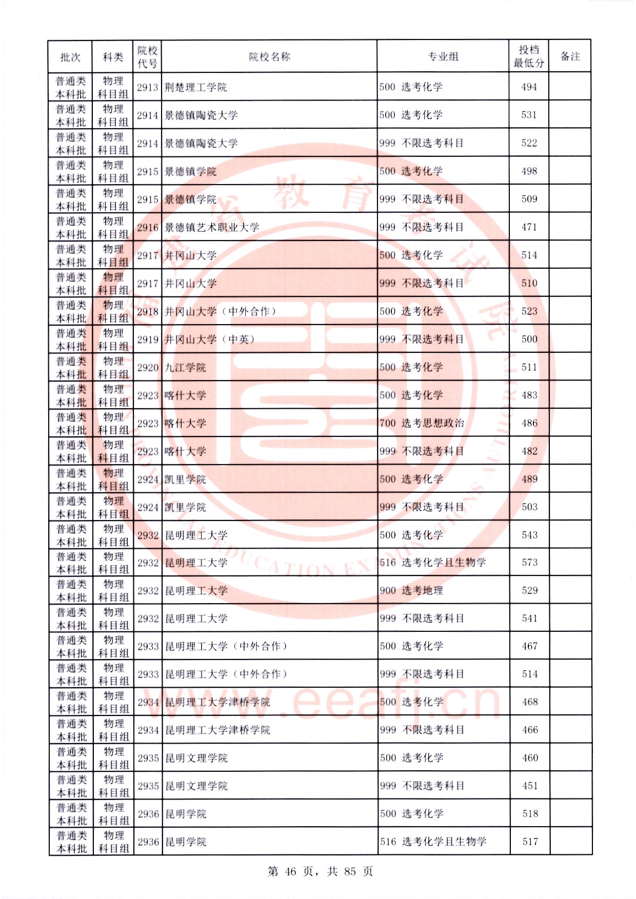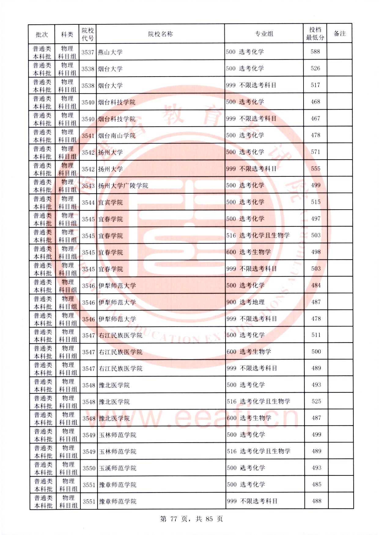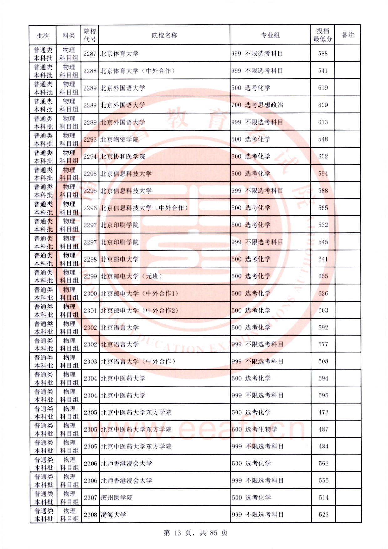 2025年普通类本科批常规志愿院校专业组投档最低分公布(物理科目组)
