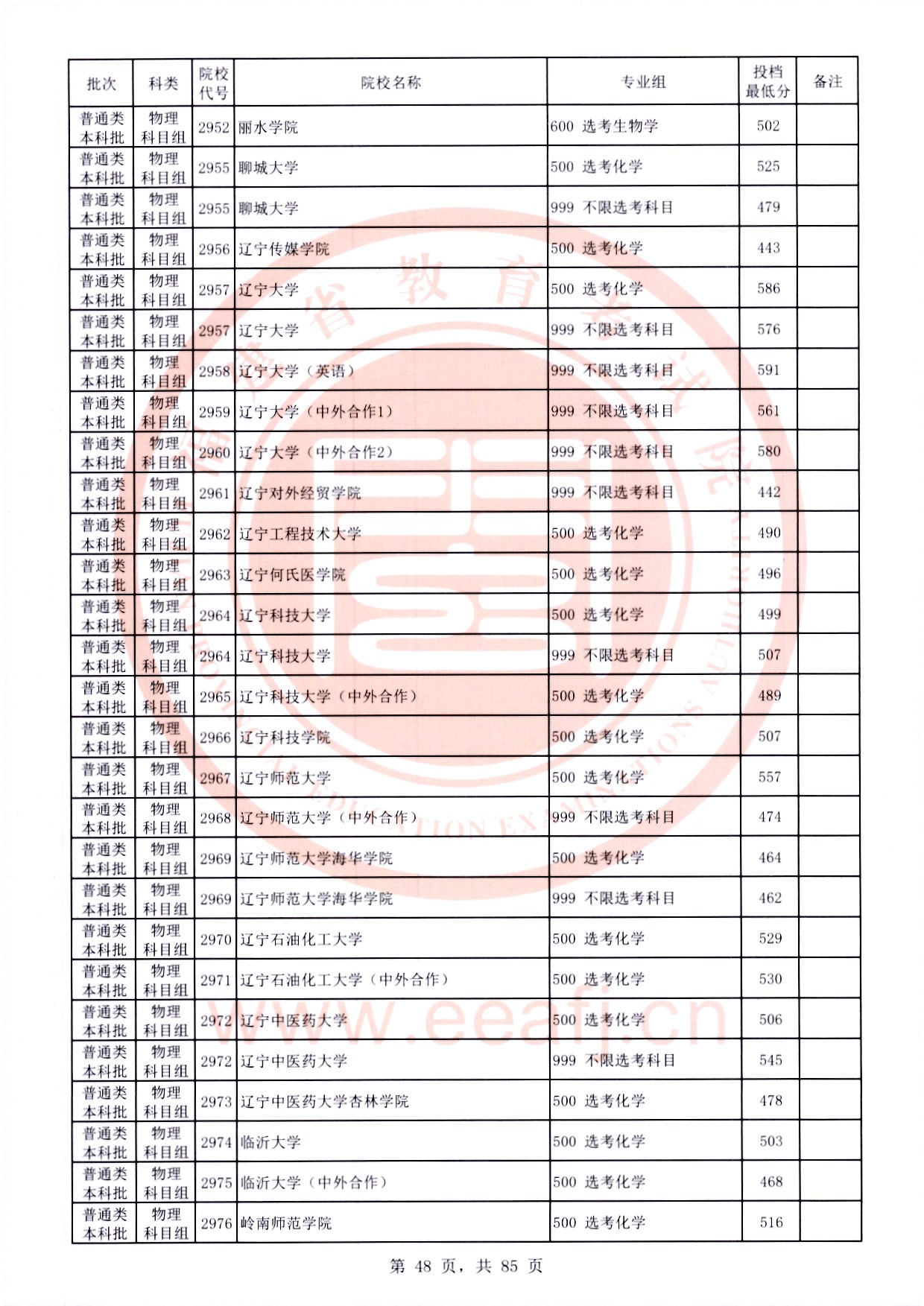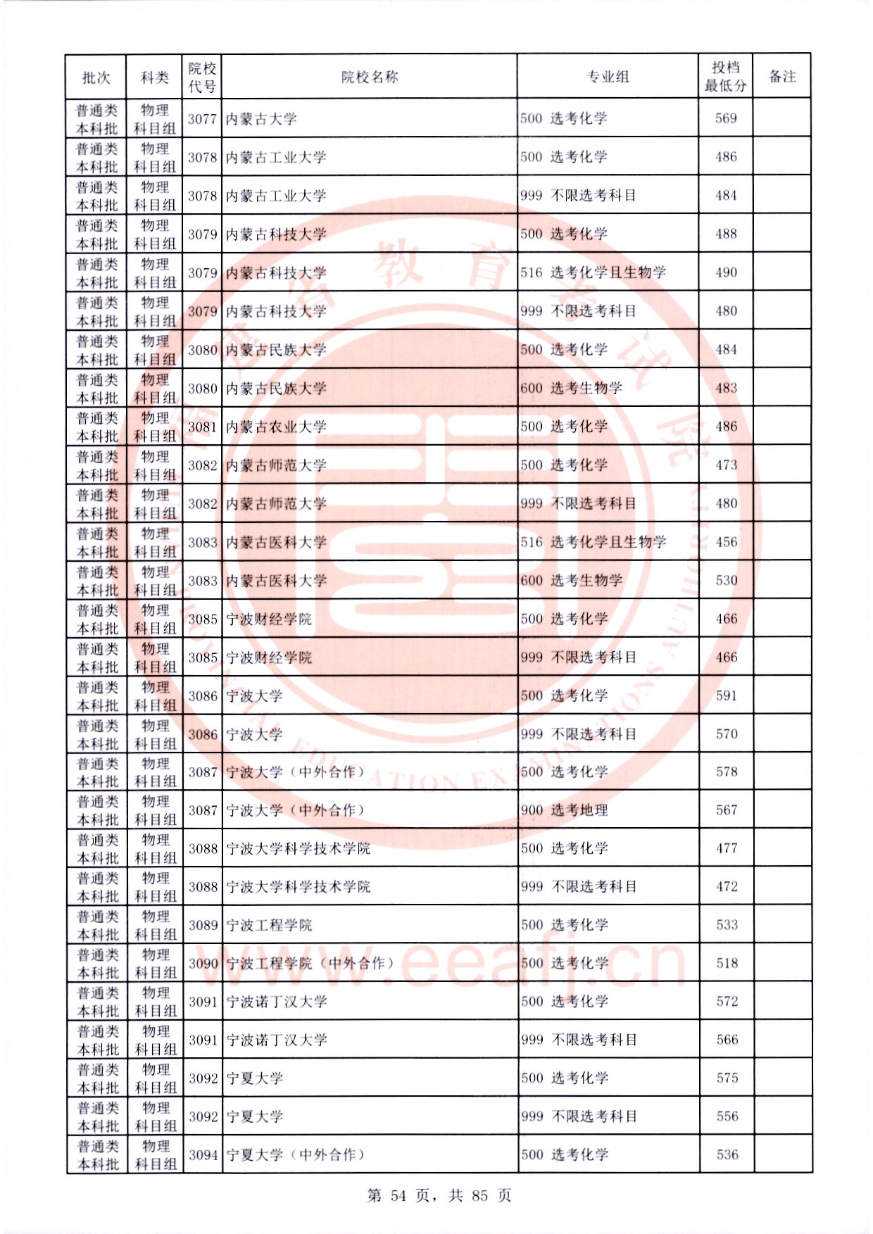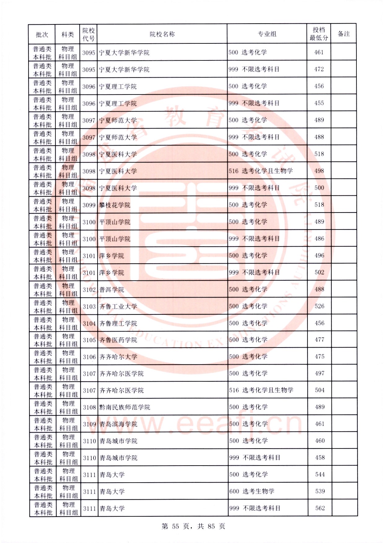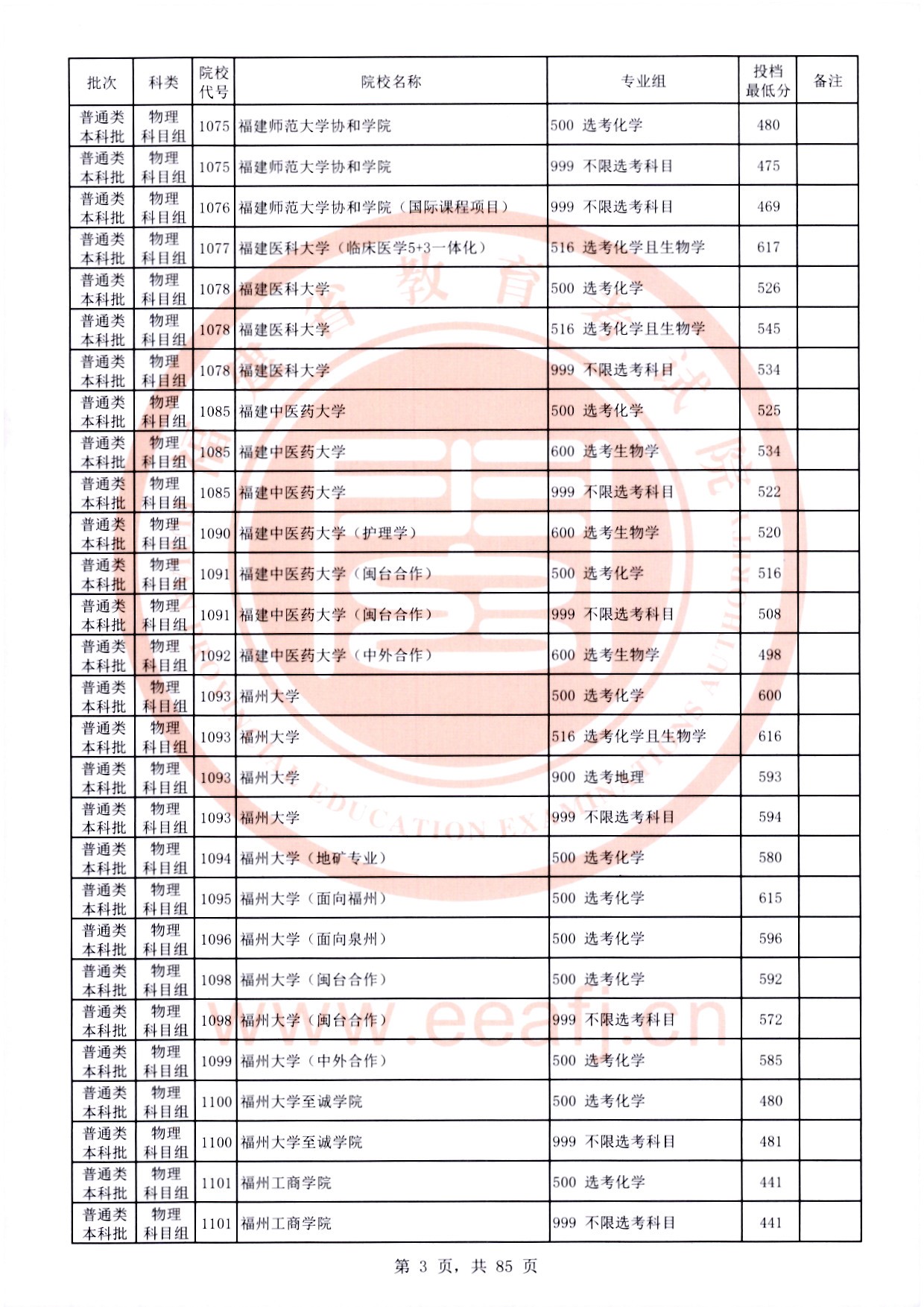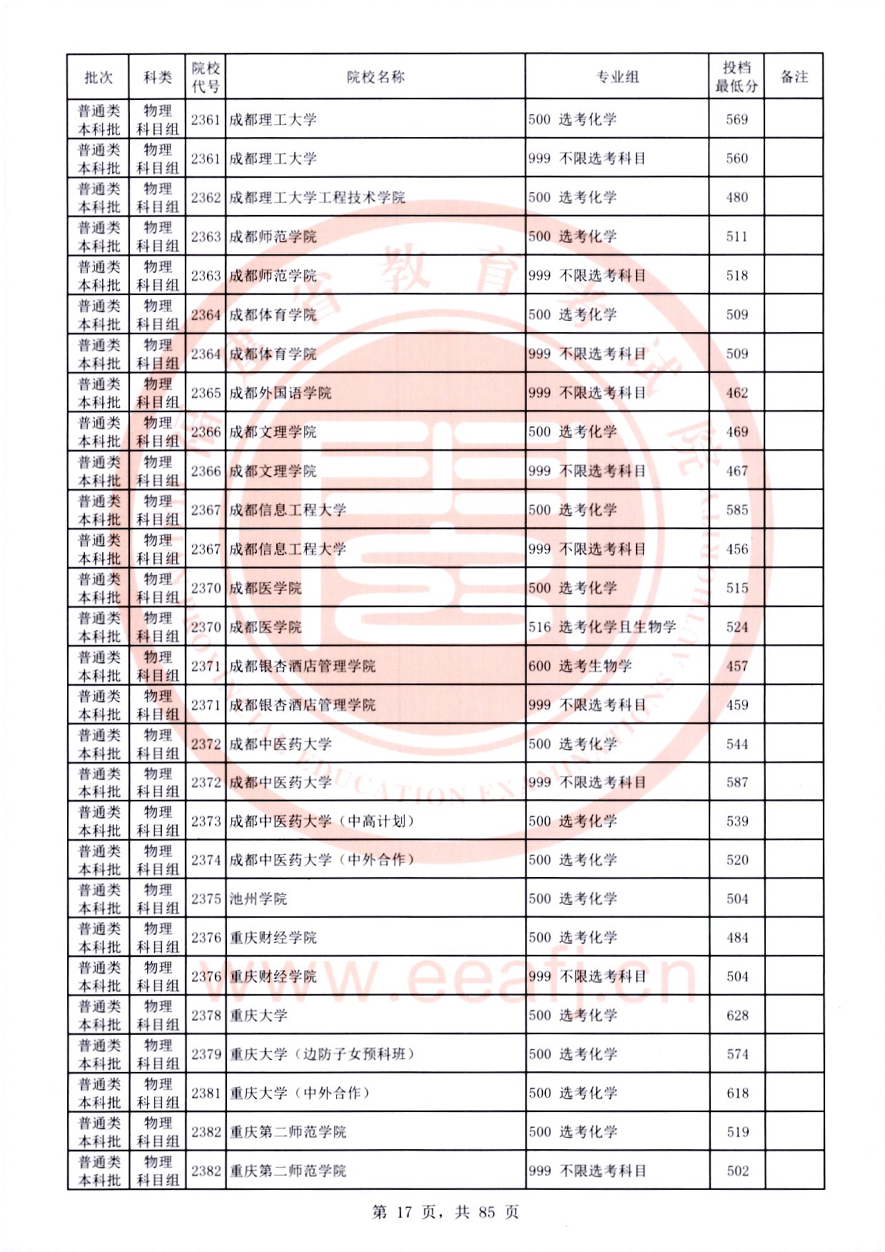 2025年普通类本科批常规志愿院校专业组投档最低分公布(物理科目组)
