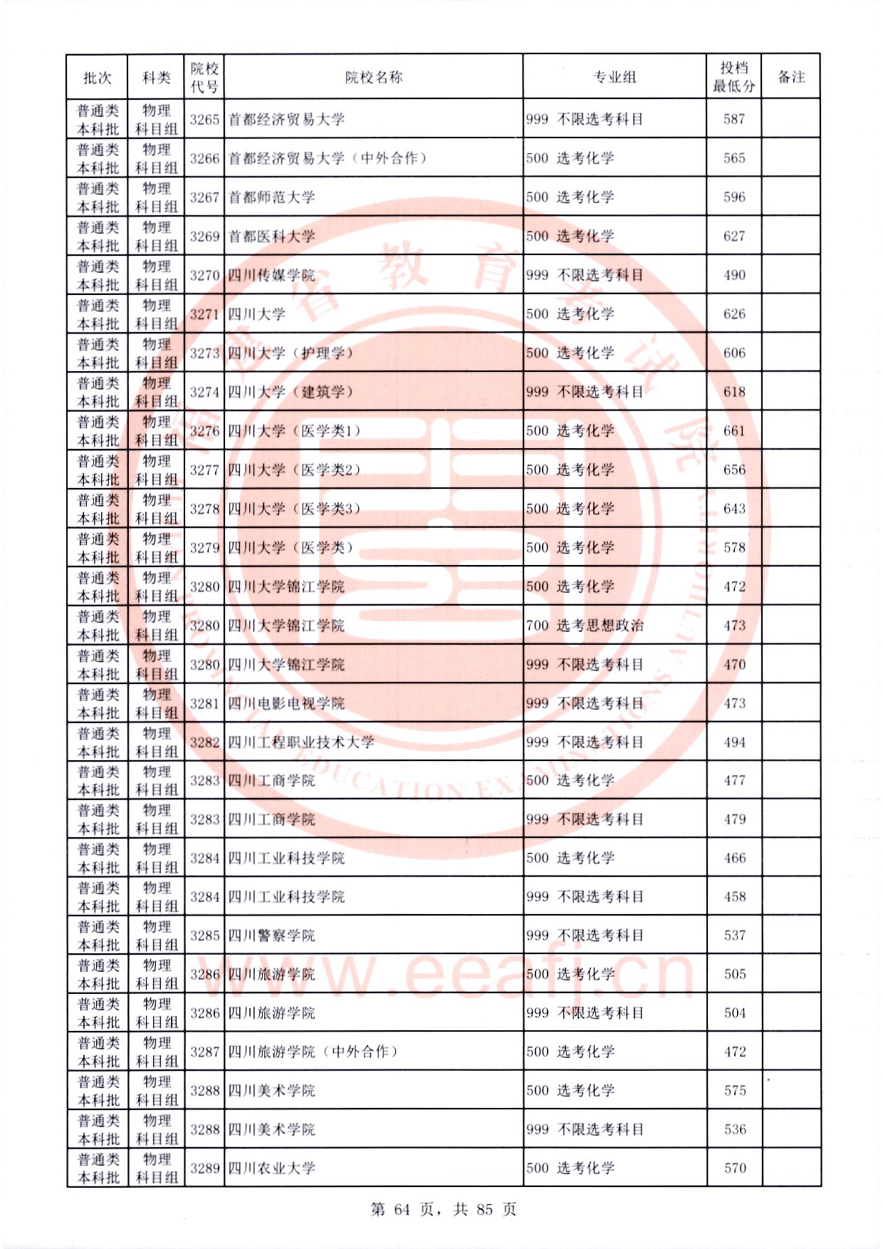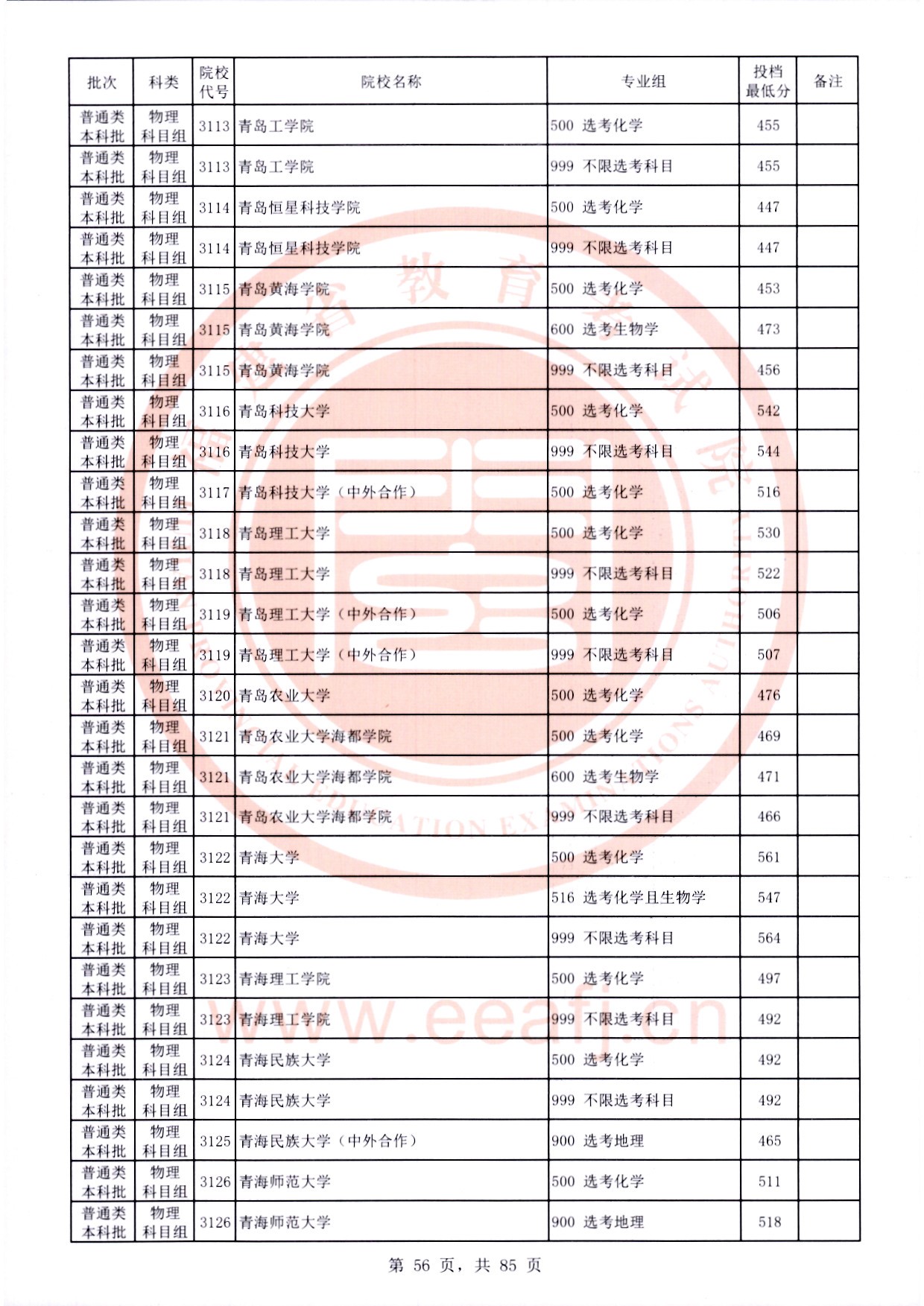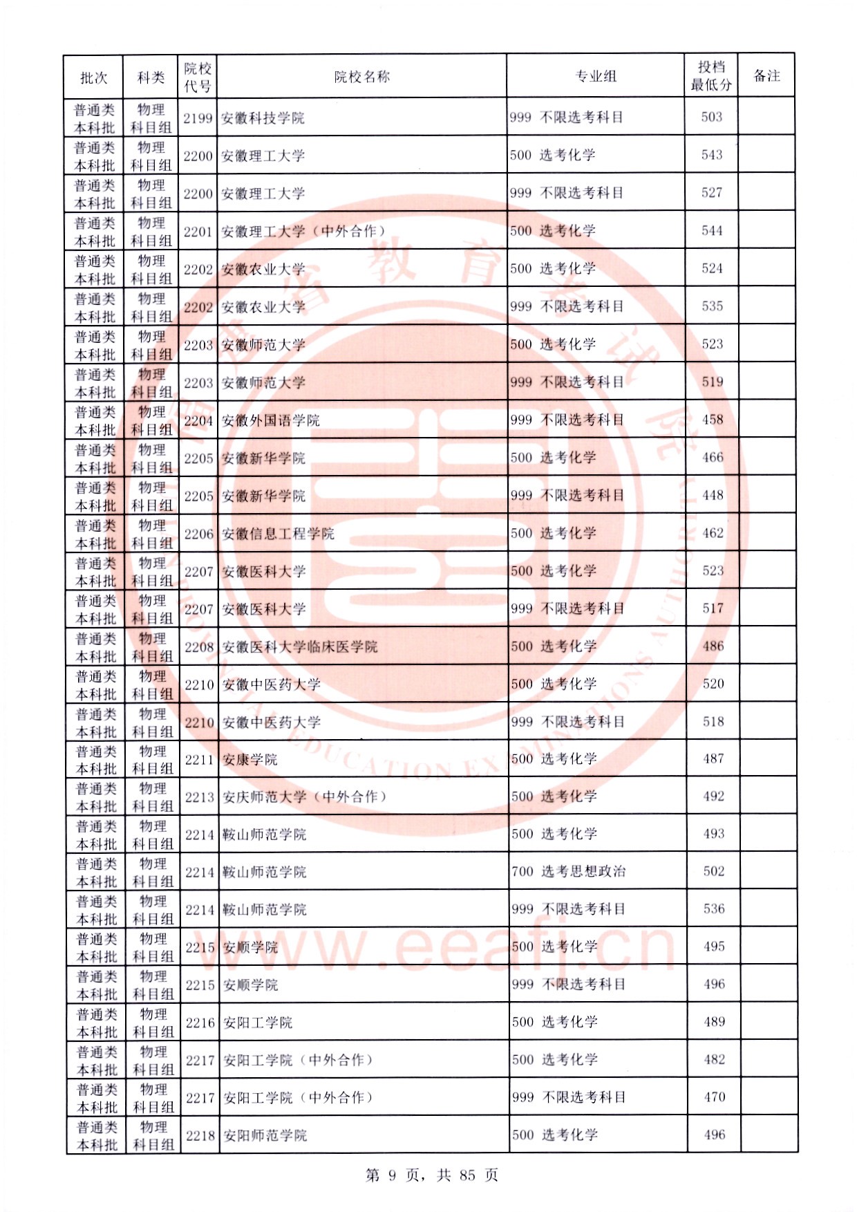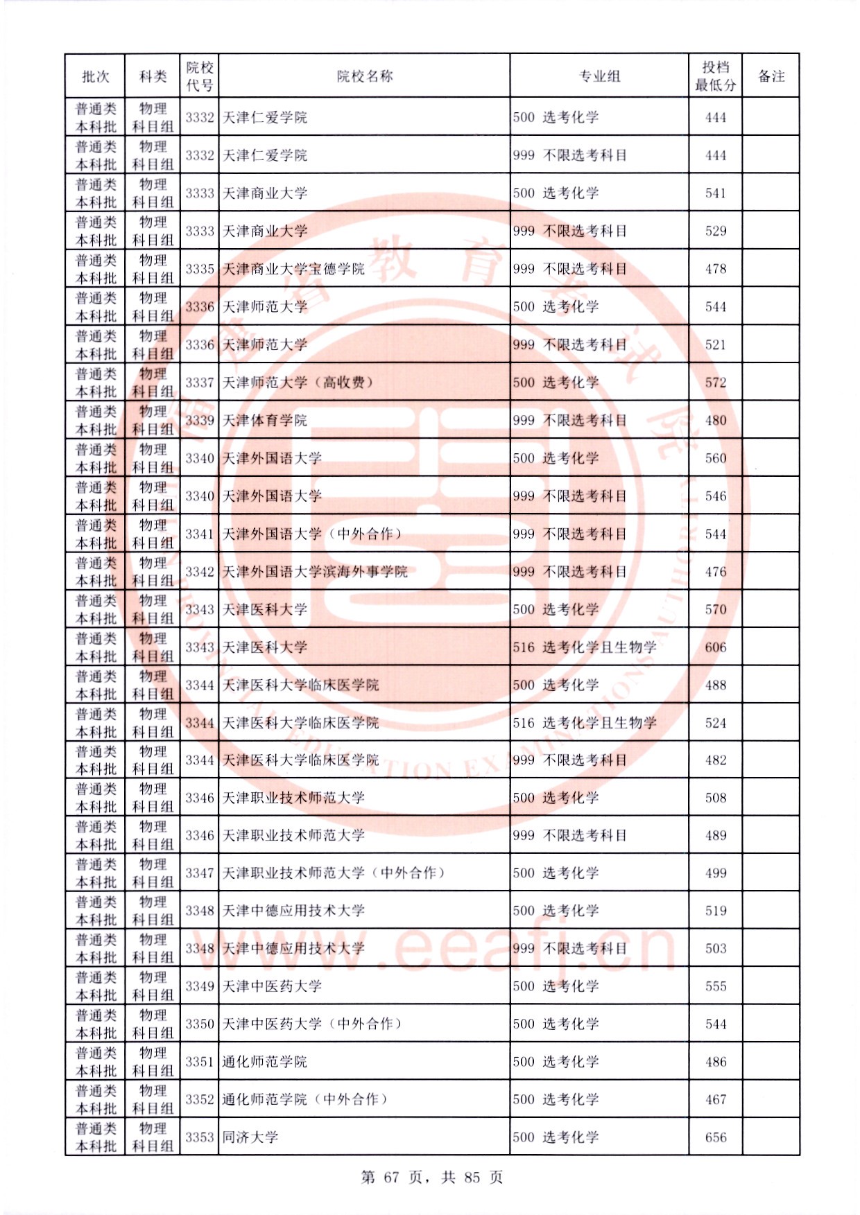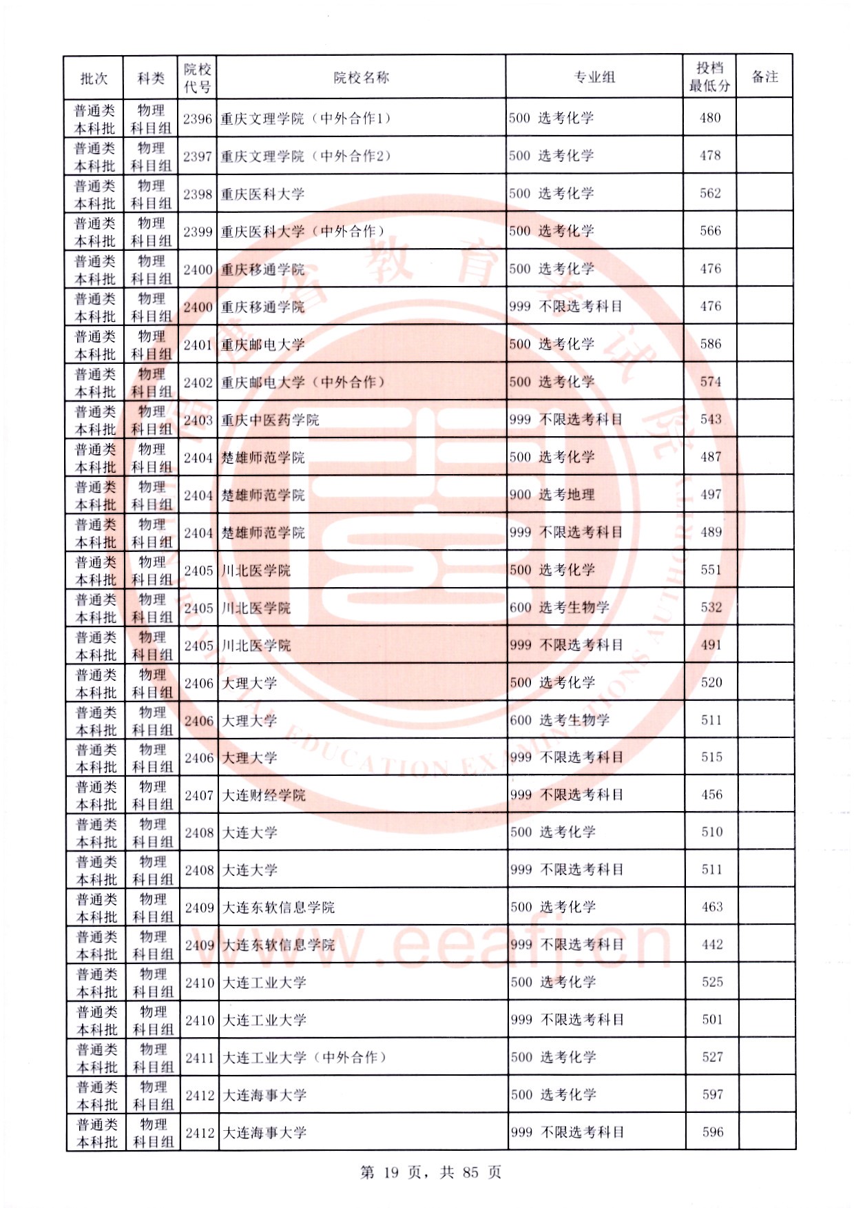 2025年普通类本科批常规志愿院校专业组投档最低分公布(物理科目组)