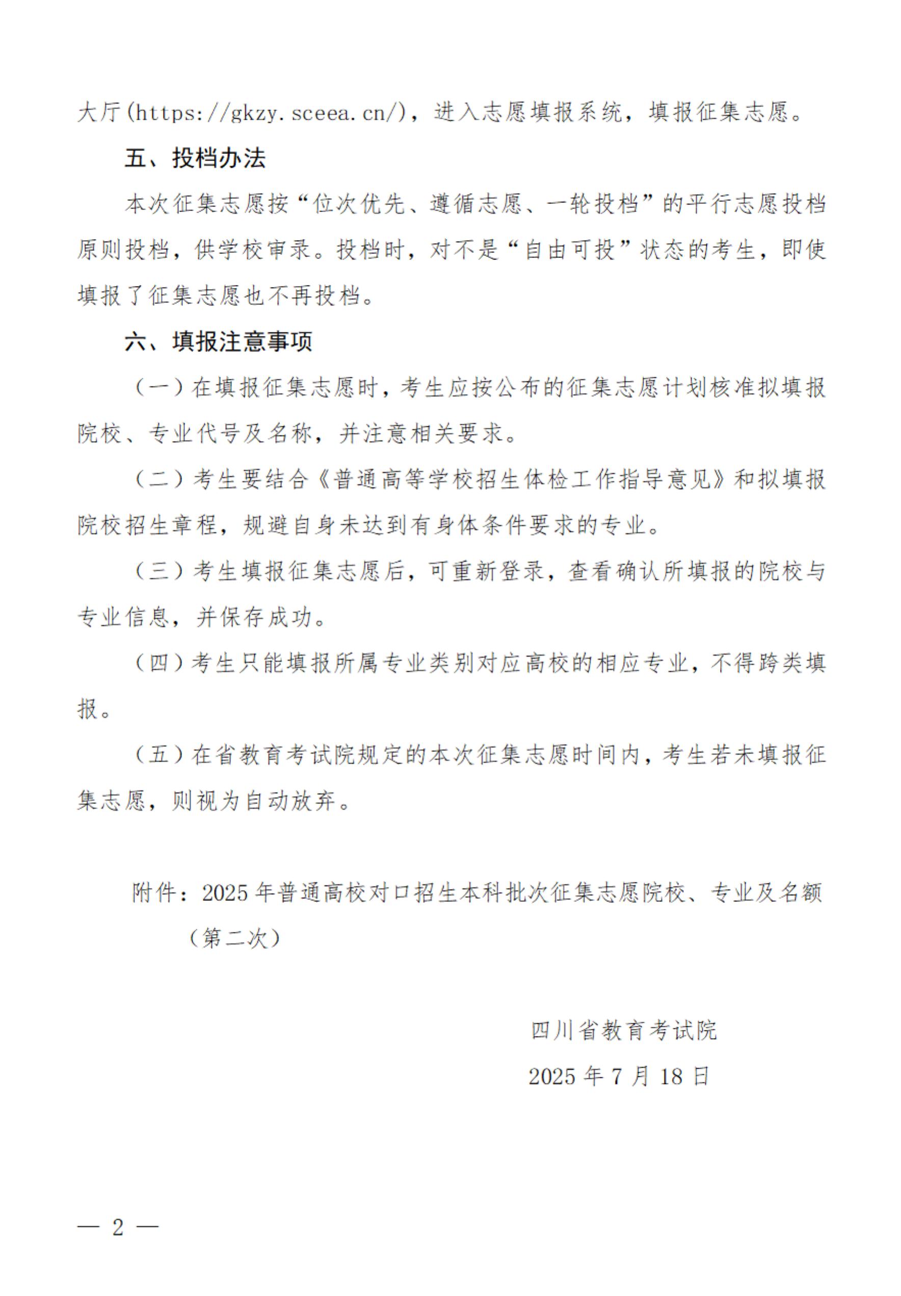 关于普通高校对口招生本科批次第二次征集志愿的通知