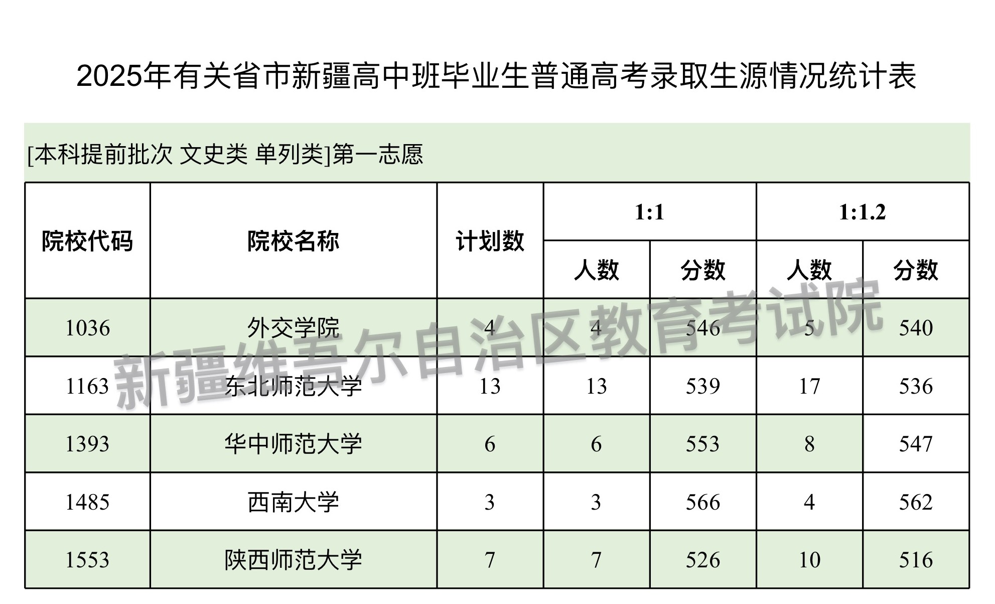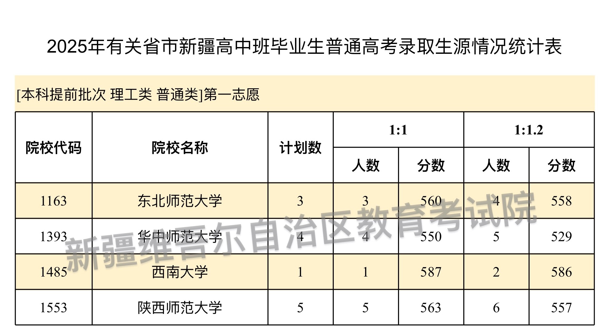 按照录取工作安排,2025年有关省市新疆高中班毕业生普通高考招生本科提前批次投档录取工作于7月19日开始,新疆教育考试院根据投档原则进行了投档,现将部分院校生源情况公布如下: