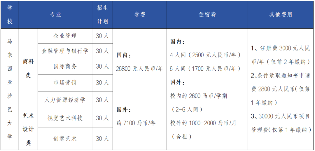 备注:马来西亚沙巴大学本科学制年限根据专业的不同,分为3.5年制和4年制。
