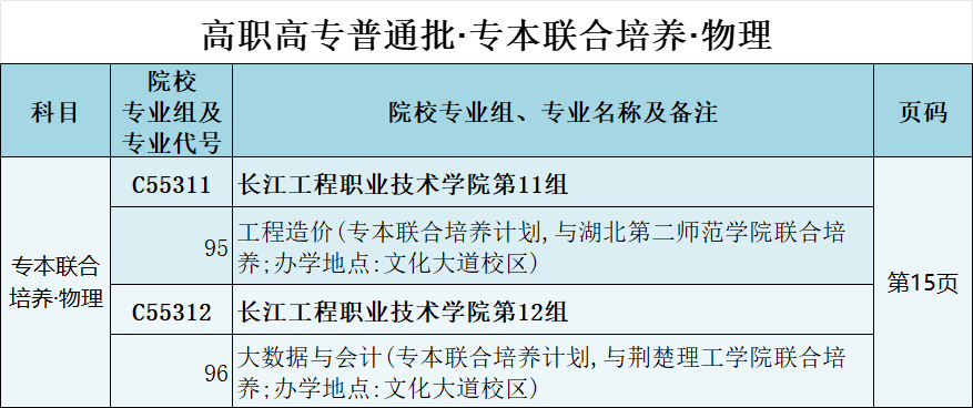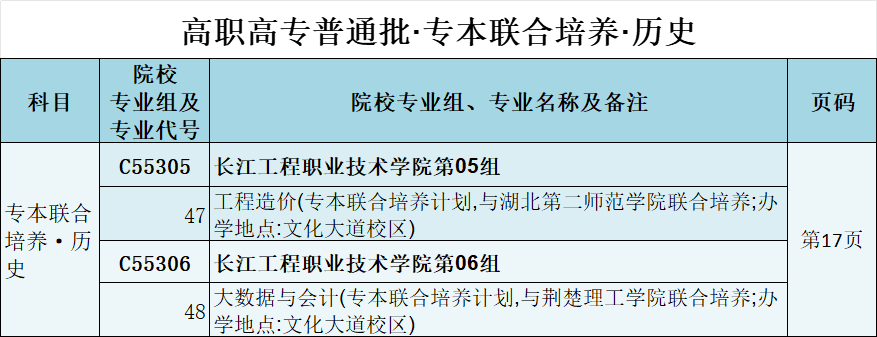 专本联合培养专业:投档控制线为本科普通批录取控制线下10分以上可填报。考生可以将专本联合培养院校专业组与其它非专本联合培养院校专业组混合填报,也可以将不同高职院校的专本联合培养专业组混合填报,投档时按院校专业组志愿填报顺序投档。建议首选历史考生分数在432分以上,第一志愿填报C55305专业组和C55306专业组。首选物理考生分数在416分以上,第一志愿填报C55311专业组和C55312专业组。