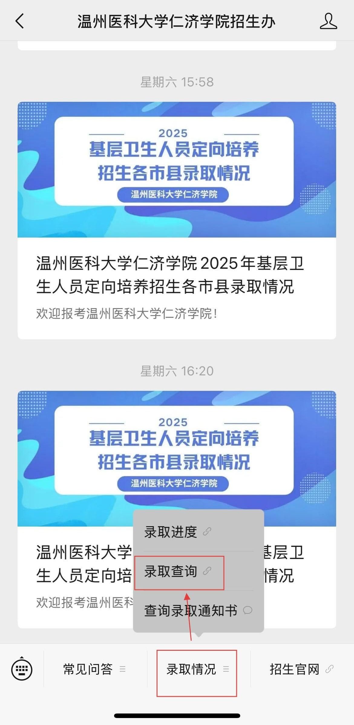 考生可登录我校招生官网或通过招生公众号,凭姓名和准考证号查询录取情况。