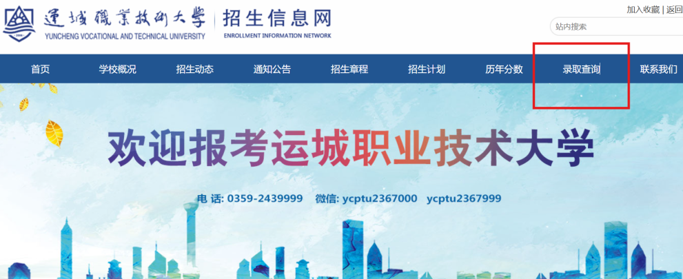 访问“运城职业技术大学—招生信息网”,点击“录取查询”。