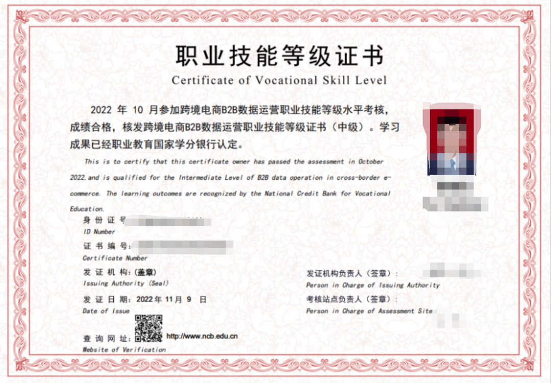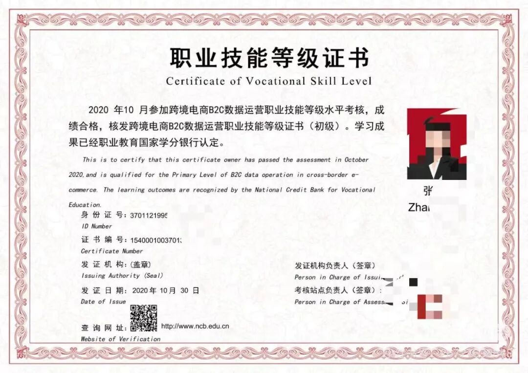 跨境电商B2B数据运营职业技能等级证书、跨境电商B2C数据运营职业技能等级证书。