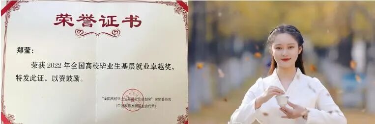 2023年全国普通高校国家奖学金获得者。曾获得无锡市“三好学生”、君远突出才能奖学金,2021-2022学年校“弘毅奖学金”一等奖、三好学生;2022-2023学年校“弘毅奖学金”特等奖、三好学生标兵等荣誉;积极参与各级各类技能大赛,荣获2022年第三届全国大学生直播电商创新创业大赛江苏省省赛及国赛一等奖、2022年无锡市大中专院校校园营销大赛特等奖、2023年“创青春”江苏青年创新创业大赛三等奖等荣誉。