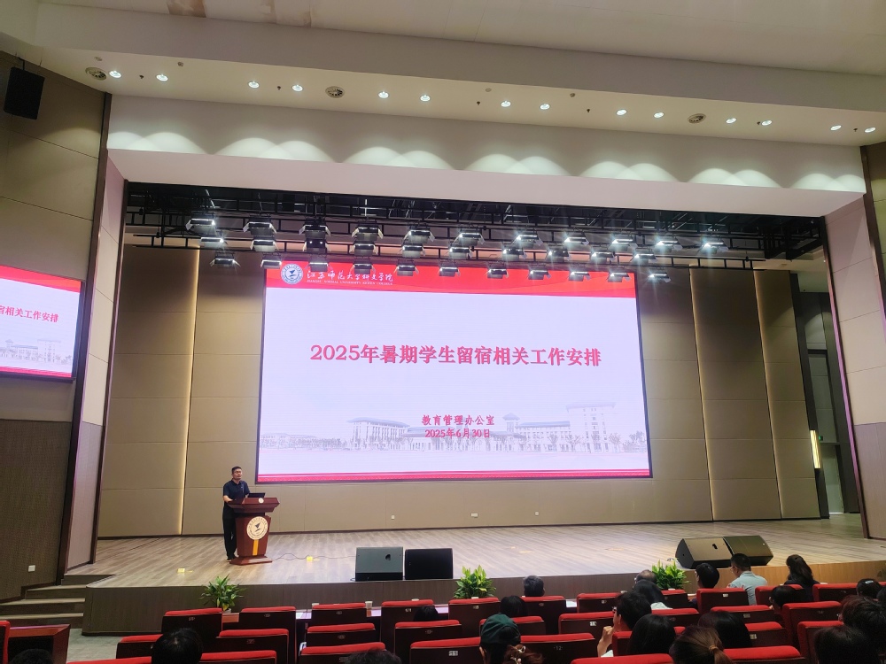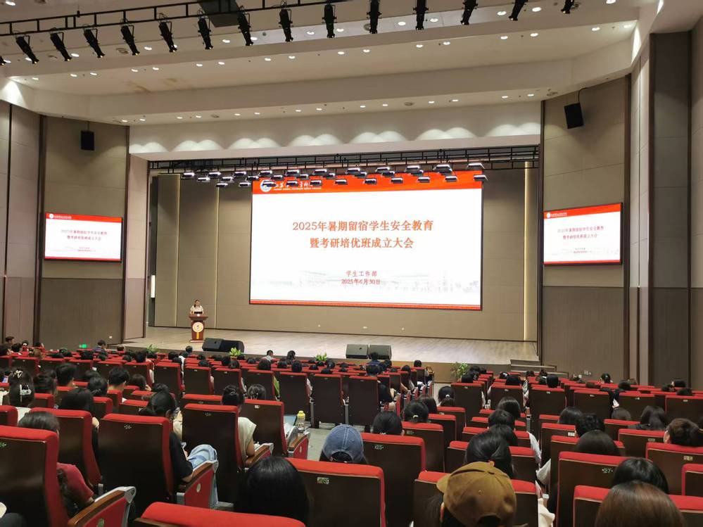 6月30日下午,2025年暑期留宿学生安全教育暨考研培优班成立大会在图书馆学术报告厅举行。院党委副书记丁力、教学事务部、学生工作部、二级学院相关负责人、辅导员及五百余名暑期留宿学生参加。