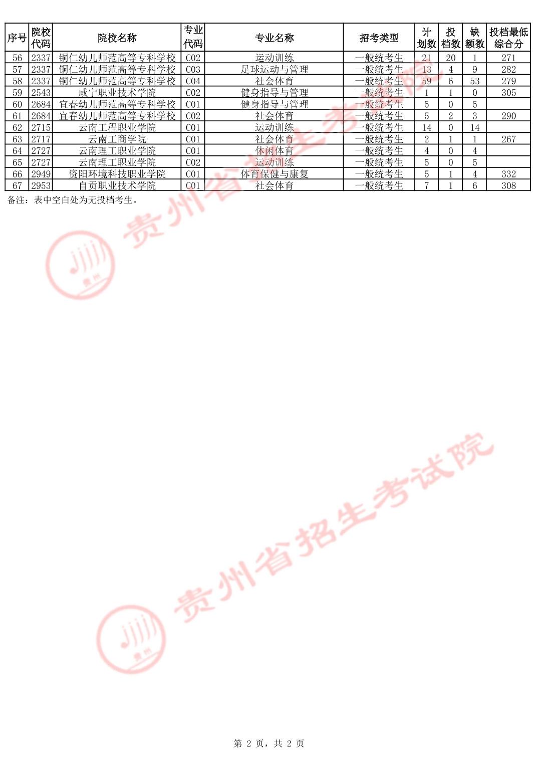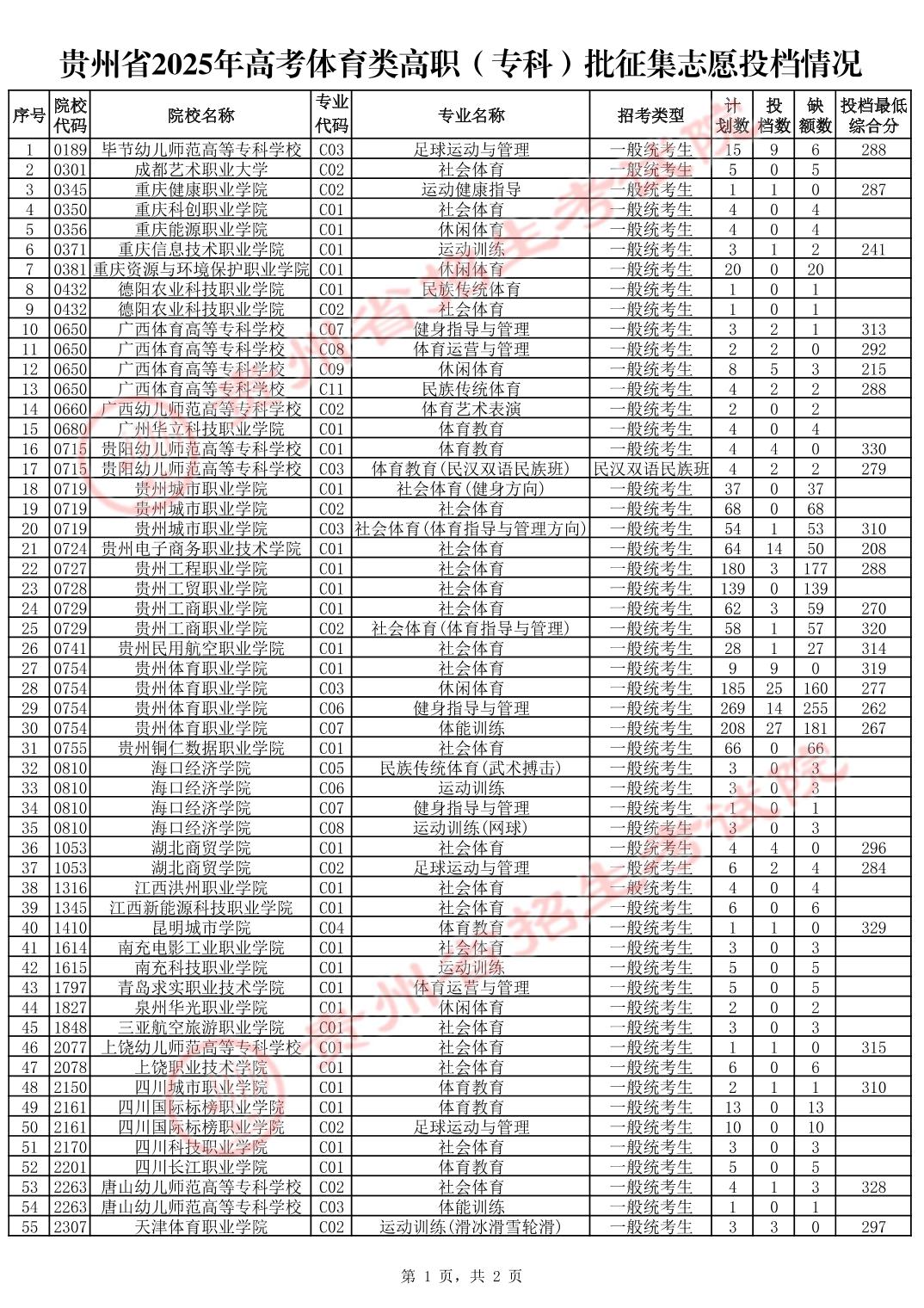 贵州省2025年高考体育类高职(专科)批征集志愿投档情况.pdf
