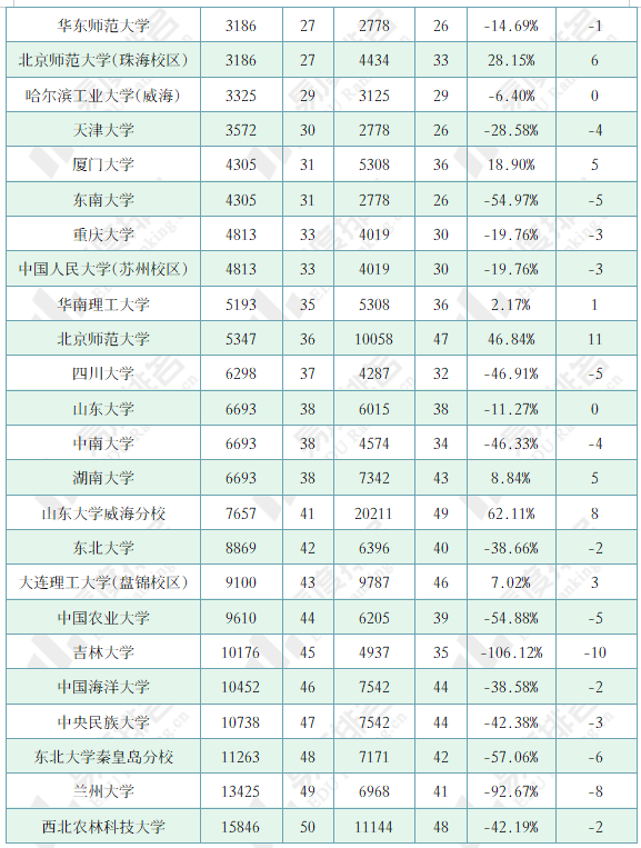注:1.排名仅为985院校中的排名;2.除
