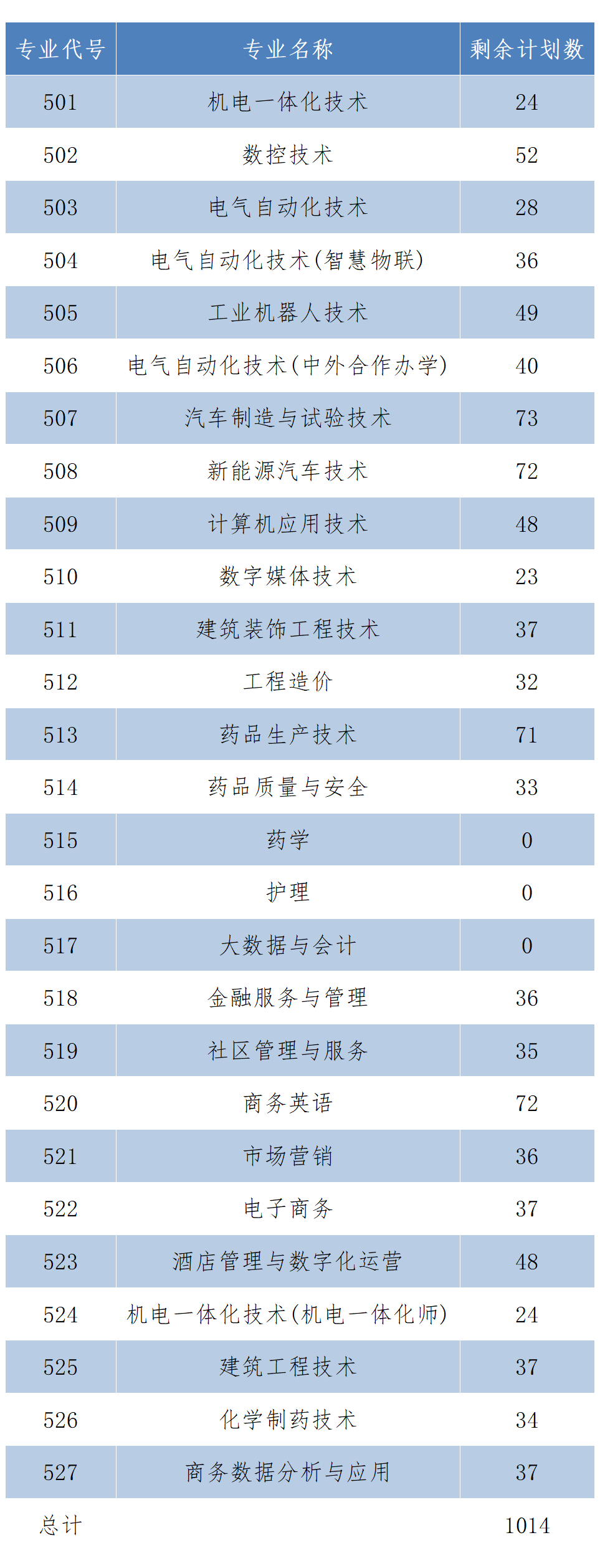 我校浙江省普通类一段平行志愿的录取工作已结束,27个专业的291个招生计划在一段录取,其中药学、护理、大数据与会计3个专业全部在一段录取完成。除此之外,我校普通类省内其他专业计划充裕,录取机会多,热门专业任选,欢迎广大考生踊跃报考。