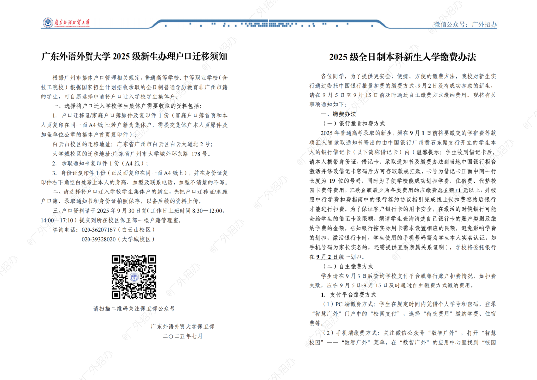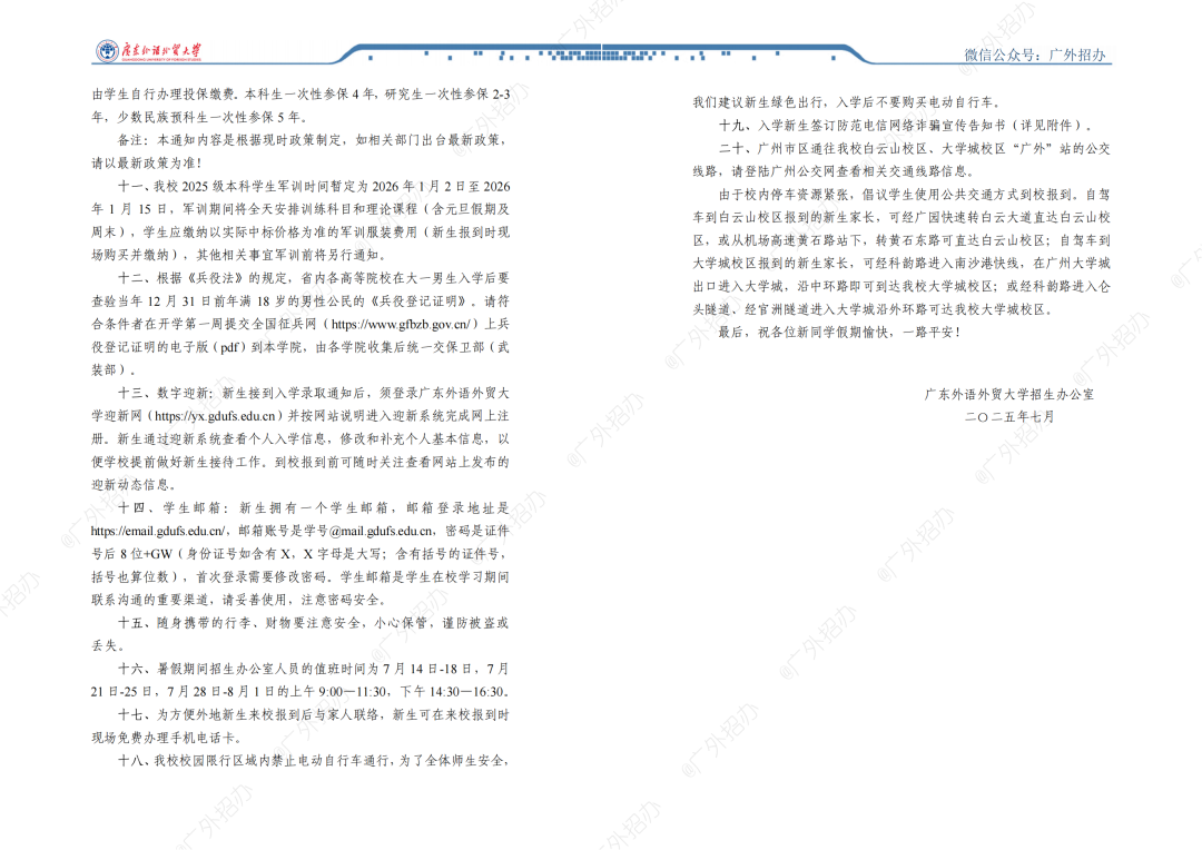 我校2025年本科新生录取通知书(含广东省外、第二学士学位、港澳台)已于8月1日晚全部交由中国邮政寄出,EMS详情单号已上传至查询系统,考生可登录“广外本科招生网”的“查询入口”栏目查询EMS详情单号并通过中国邮政相关渠道追踪物流信息。