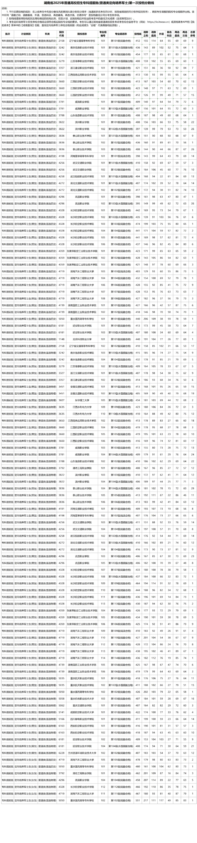 湖南省2025年普通高校招生专科提前批(普通类定向培养军士)第一次投档分数线