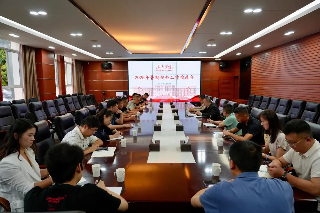 2025年7月31日上午,滇池学院2025年暑期安全工作推进会在海埂校区崇志楼会议室召开。滇池学院党委书记陈炳灿,副校长林秀波,党政办公室、党委宣传部、纪检监察办公室、人事处、教务处、招就处、学生处、校团委、保卫处、现代教育技术中心、图书馆、基建处、后勤处、云南快洁后勤服务有限公司等单位负责人参加会议。会议由林秀波副校长主持。