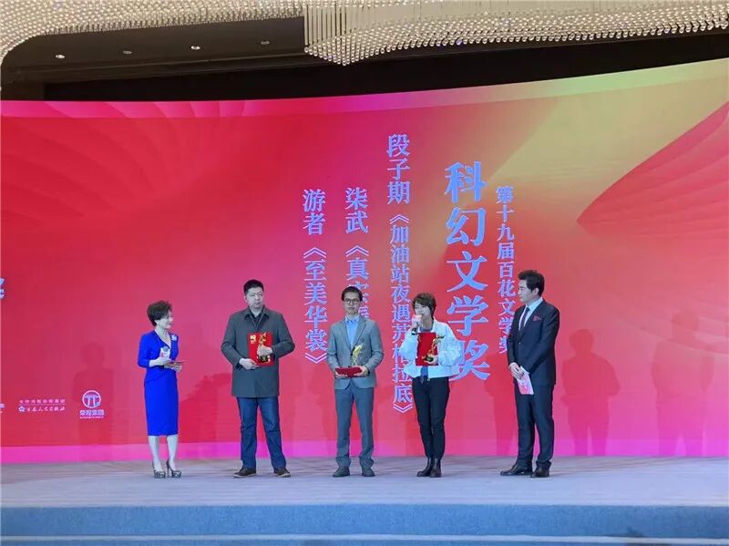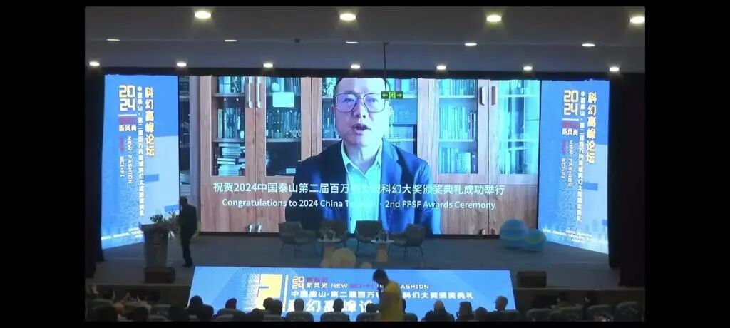 (图为刘慈欣为泰山·中国科幻高峰论坛发来视频)