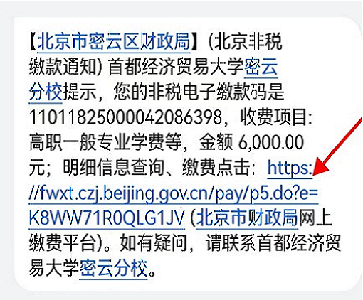 (1) 学生接收通知书的手机号码会收到(北京市密云区财政局)开头的短信,点击短信中带下划线的链接