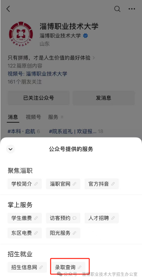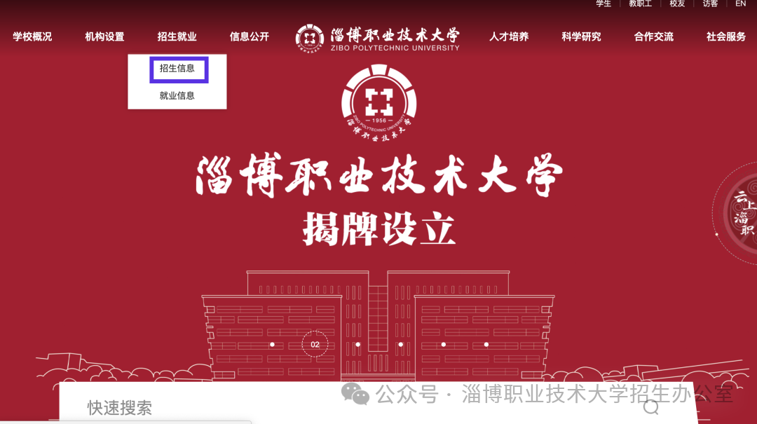 搜索“淄博职业技术大学”微信公众号