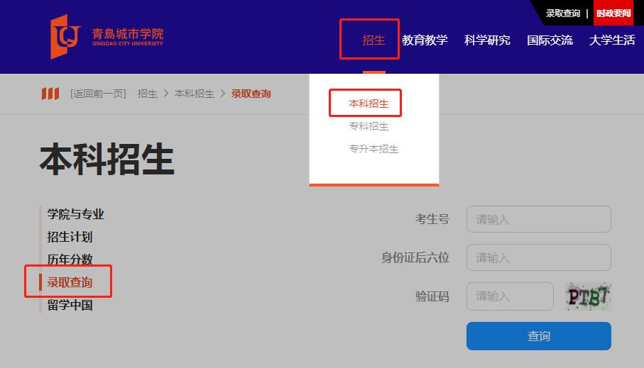查询方法:可以登录我校官网(https://www.qdc.edu.cn/),选择"招生-本科招生",在左侧导航栏点击"录取查询"后输入身份证后六位及考生号即可查询录取信息及通知书快递单号。
